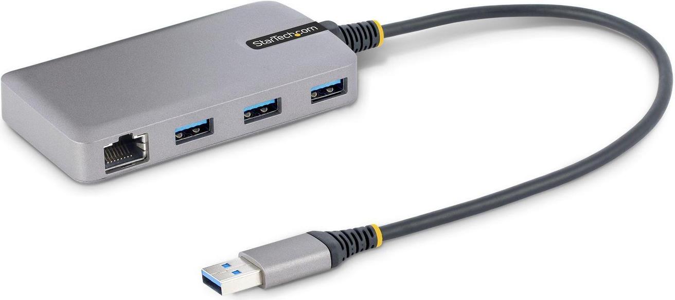 10/100/1000 Mbit/s Ethernet - USB Typ-A auf 3x USB Typ-A - USB 3.2 Gen 1 (5 Gbit/s) - 30cm integriertes Host Kabel
