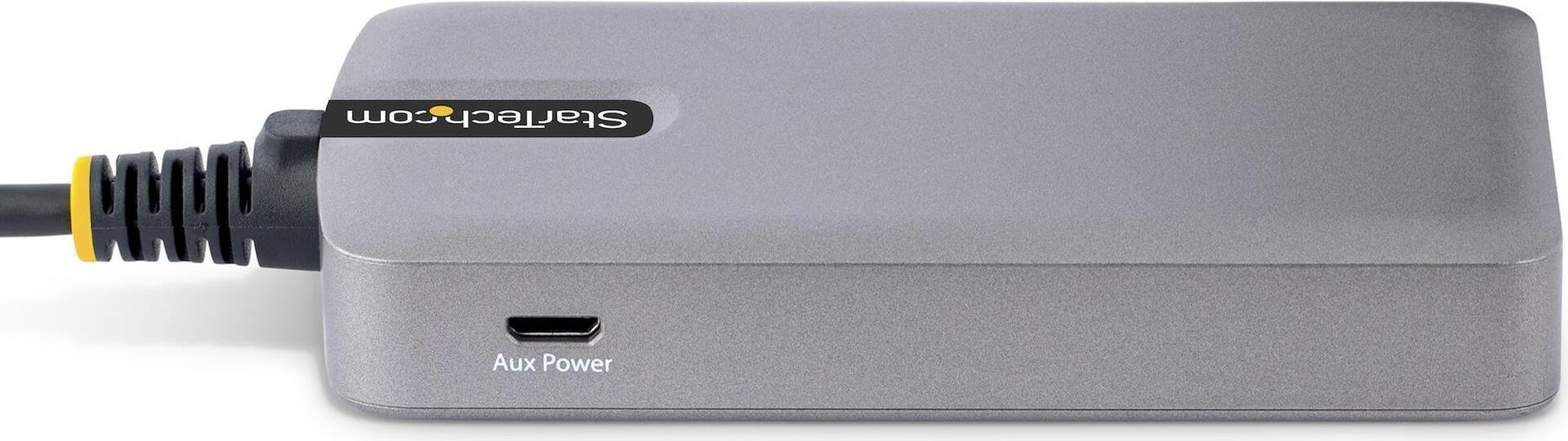 Der USB Hub kann allein mit Bus-Strom betrieben werden, hat aber einen Micro USB Stromeingang, der an einen USB Netzteiladapter (nicht inklusiv) angeschlossen werden kann und zusätzlich zu den 4,5 W Bus-Strom vom USB Host bis zu 4,5 W (5V/0,9A) Strom bietet. Diese Flexibilität ist ideal für Anwendungen, bei denen zusätzlicher Strom benötigt wird, z. B. für den Anschluss eines USB Geräts mit hoher Leistung, wie einer externen SSD, während die anderen Anschlüsse für den Anschluss von Geräten mit geringerer Leistung verwendet werden. Für zusätzlichen Schutz hat der USB Hub eine Overcurrent Protection Funktion(OCP). Die OCP Funktion verhindert, dass fehlerhafte USB Geräte mehr Strom benutzen, als ihnen sicher zugewiesen ist.