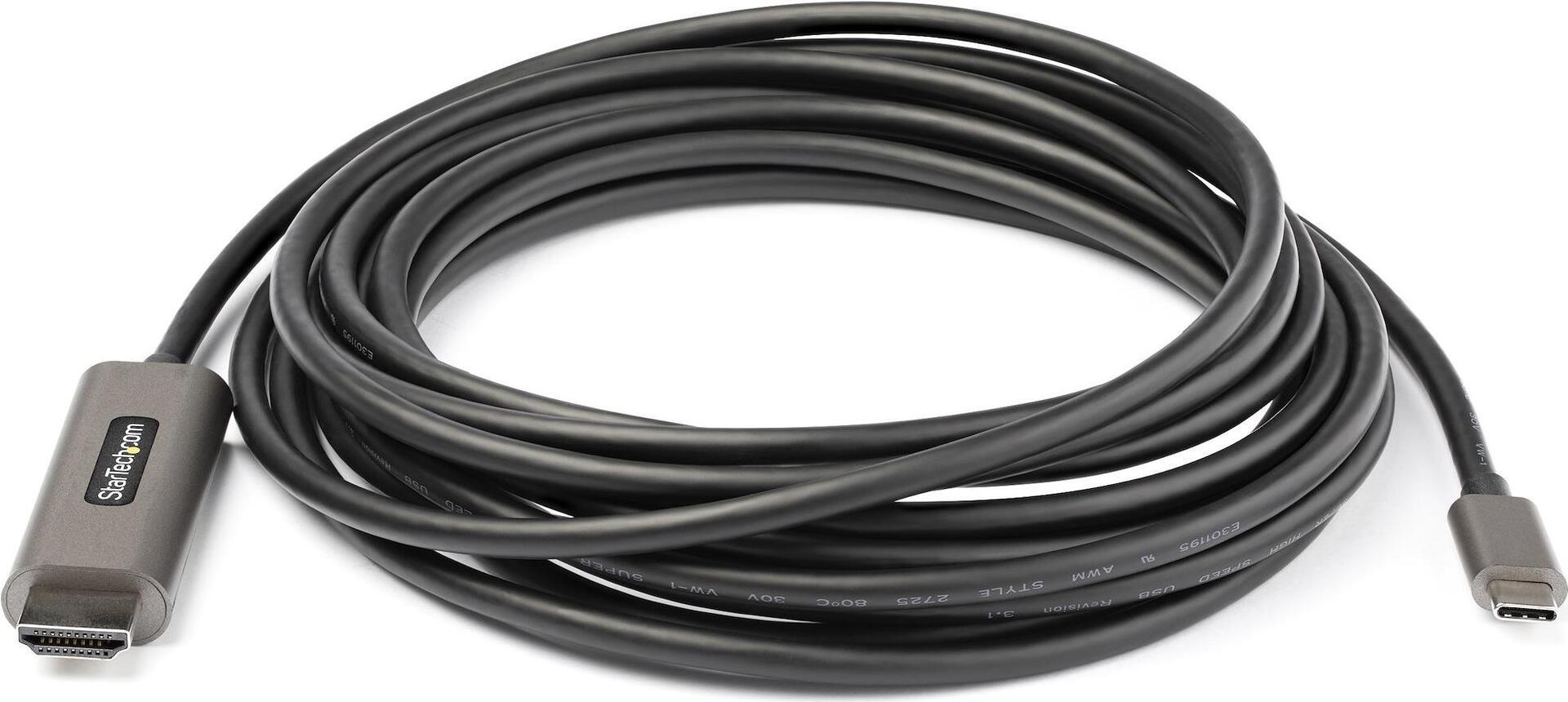 StarTech.com 16ft (5m) USB C to HDMI Cable 4K 60Hz with HDR10, Ultra HD USB Type-C to 4K HDMI 2.0b Video Adapter Cable, USB-C to HDMI HDR Monitor/Display Converter, DP 1.4 Alt Mode HBR3 - Thunderbolt 3 Compatible (CDP2HDMM5MH) - Videoschnittstellen-Converter - USB-C (M) bis HDMI (M) - 5 m - Schwarz - 4K Unterstützung, aktiv