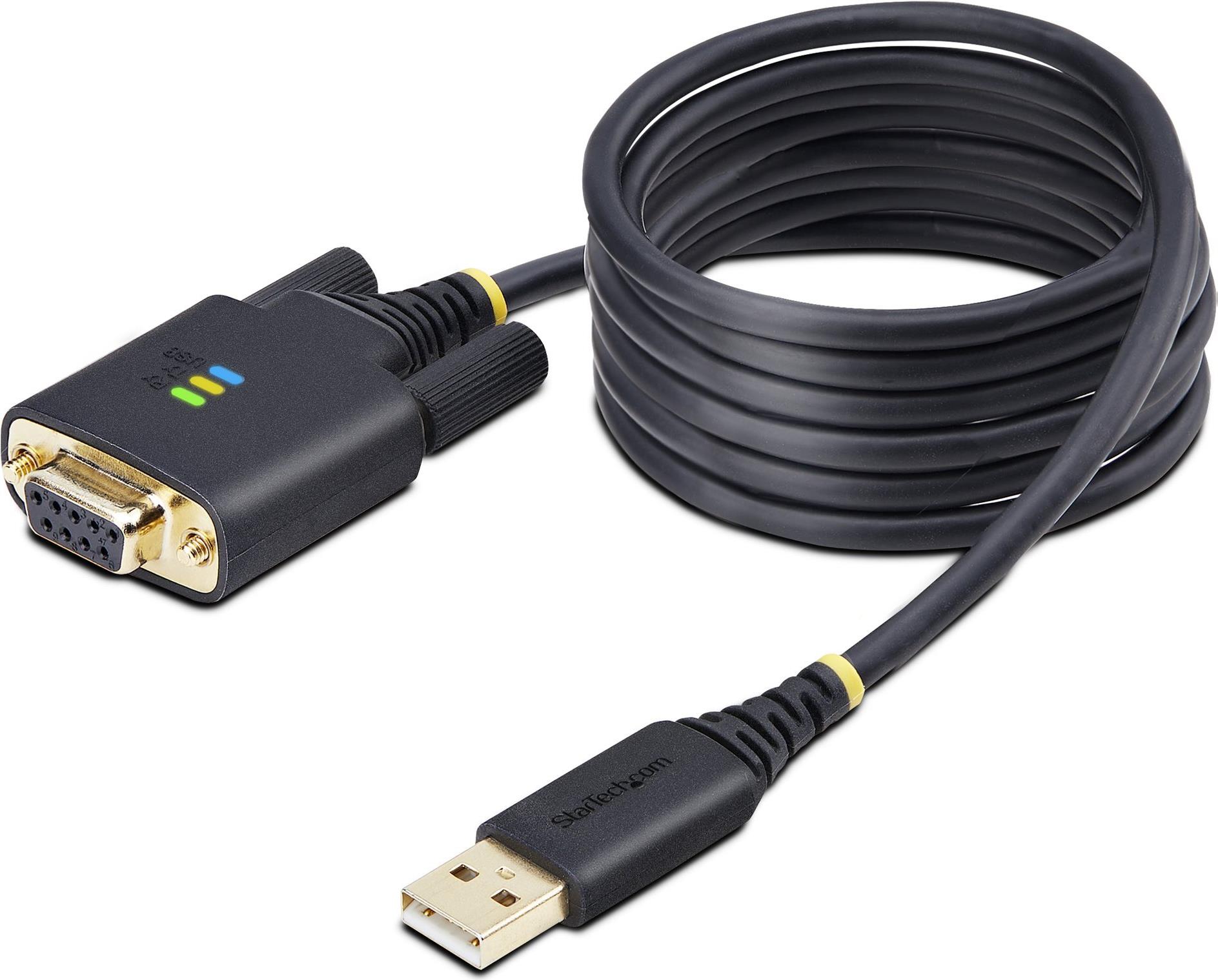 Der 2 Meter (6,6 Fuß) lange Null Modem USB Serial Adapter erweitert einen Desktop oder Laptop um einen seriellen RS-232 DB/DE-9 (weiblich) Anschluss über einen USB Typ-A Port. Befestigen Sie den Adapter mit den vorinstallierten und abnehmbaren geschlitzten D-Sub-Rändelschrauben an einem seriellen Gerät oder installieren Sie die mitgelieferten DB-9-Muttern für die Kompatibilität mit anderen seriellen Peripheriegeräten oder Kabeln.