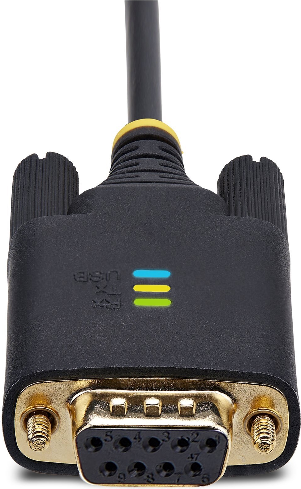 Die LED-Anzeigen für die Datenübertragung und den Datenempfang auf dem Adapter ermöglichen eine Echtzeitüberwachung der Anschlussaktivität. Die USB-LED zeigt an, wenn sich der Adapter erfolgreich auf dem Desktop oder Laptop angemeldet hat. Alle LEDs helfen bei der Diagnose und Fehlersuche.