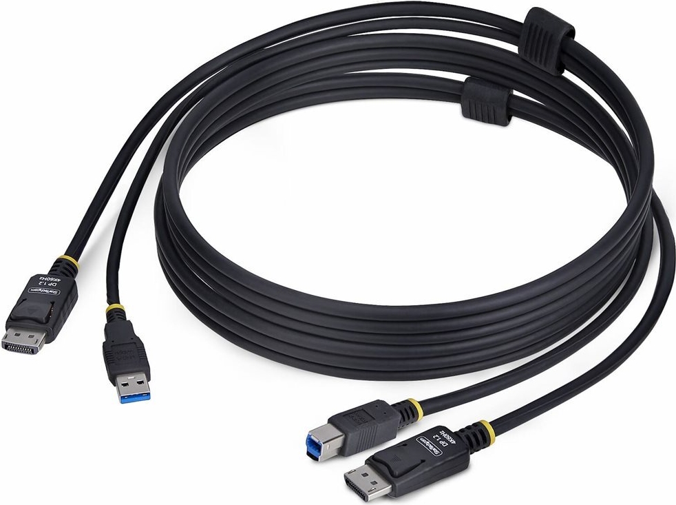 Das KVM-Kombikabel ist DisplayPort 1.2-kompatibel und unterstützt Auflösungen bis zu 4K bei 60Hz, HDR10 und DisplayPort-Audio für ein hochwertiges Audio-/Videoerlebnis. Der USB 3.0 Typ-A auf Typ-B Anschluss bietet schnelle Datenübertragungsgeschwindigkeiten von bis zu 5Gbps.