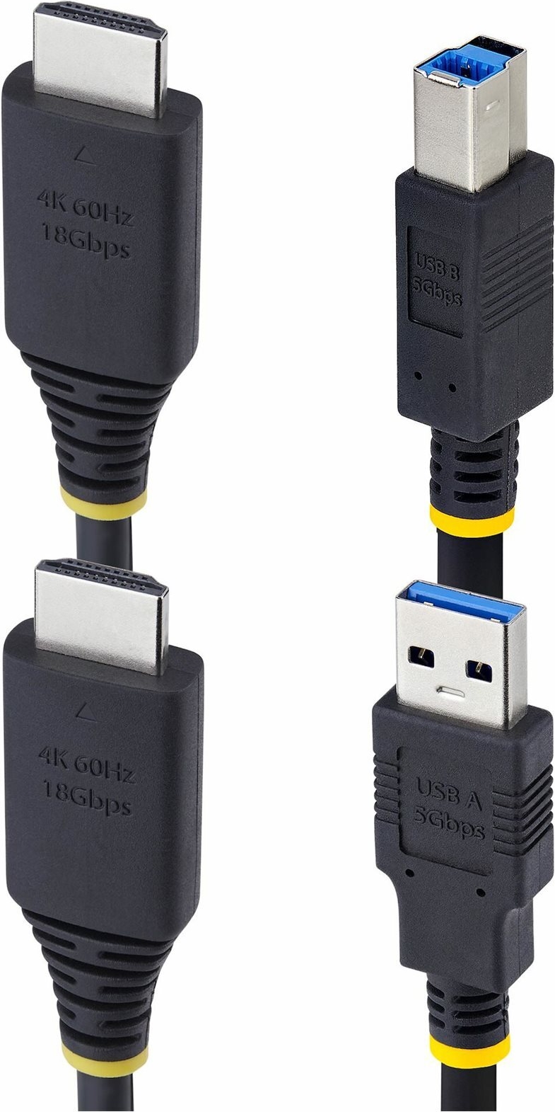 Das KVM-Kombikabel ist HDMI 2.0-kompatibel und unterstützt Auflösungen bis zu 4K bei 60Hz, HDR10 und HDMI-Audio für ein hochwertiges Audio-/Videoerlebnis. Der USB 3.0 Typ-A auf Typ-B Anschluss bietet schnelle Datenübertragungsgeschwindigkeiten von bis zu 5Gbps.