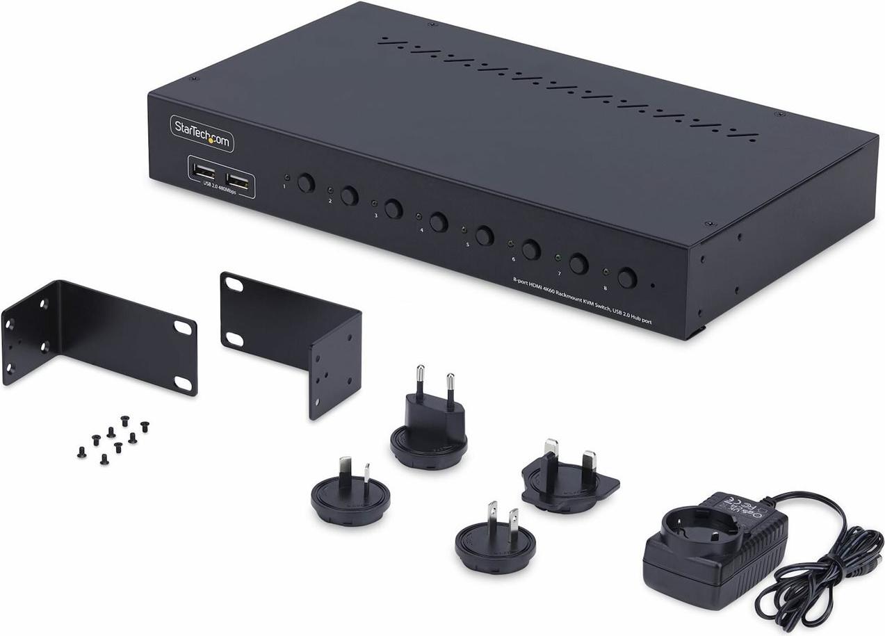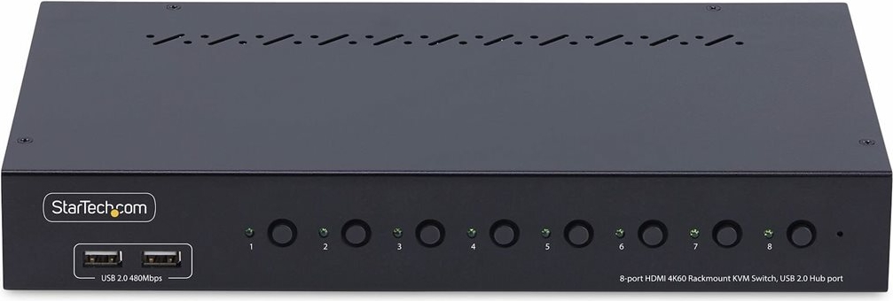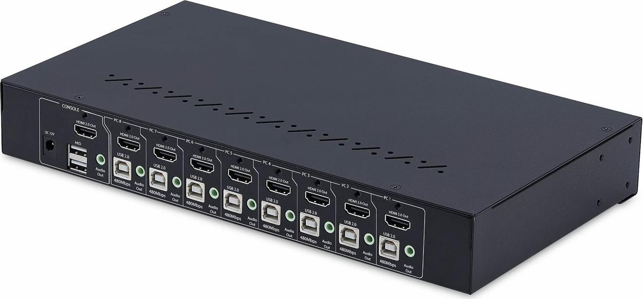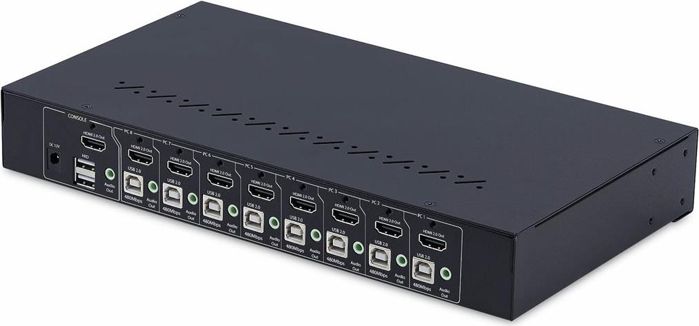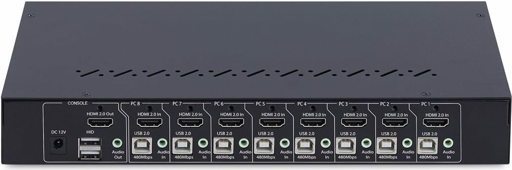 Der 4K 60Hz Rackmount KVM Switch ermöglicht das Umschalten zwischen acht HDMI-fähigen Computern, die sich eine Tastatur, eine Maus, Audio, einen 4-Port USB 2.0 Hub und einen 4K 60Hz HDMI 1.2 Bildschirm teilen. Dies ermöglicht ein müheloses Management mehrerer Systeme, eine verbesserte Effizienz des Arbeitsbereichs und eine höhere Produktivität.