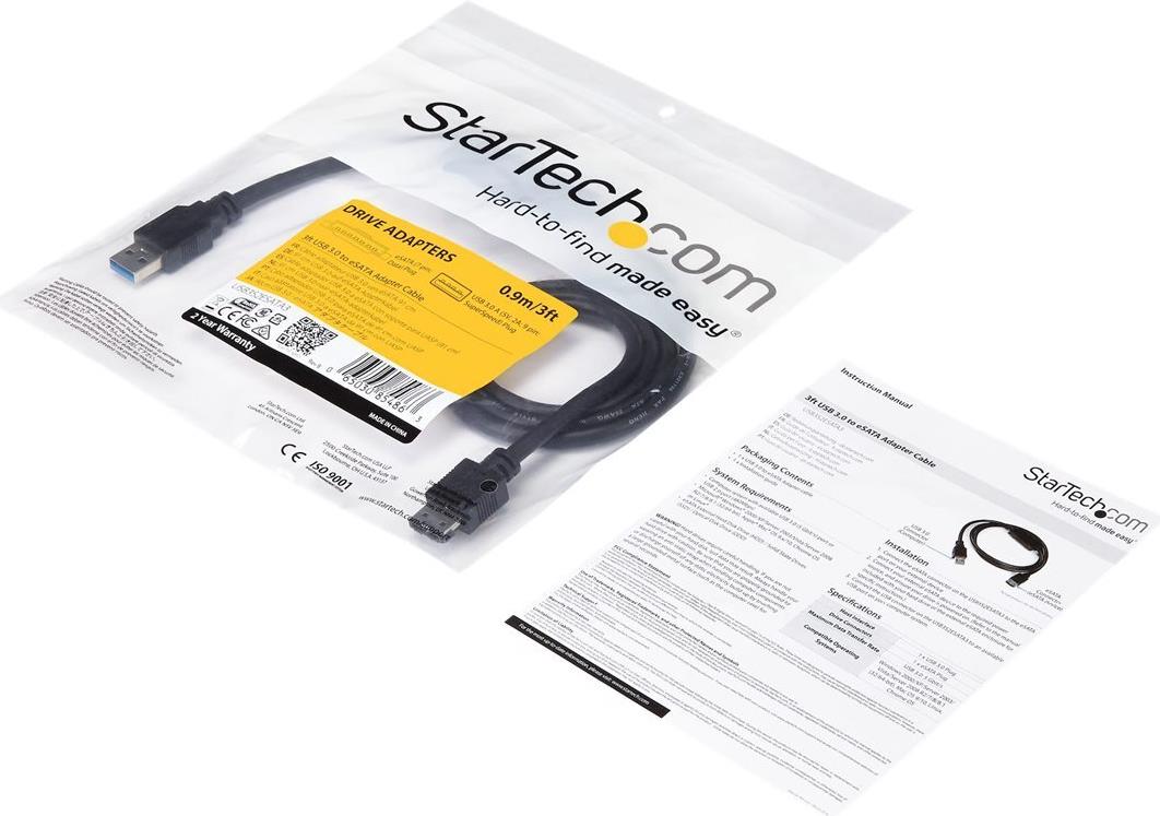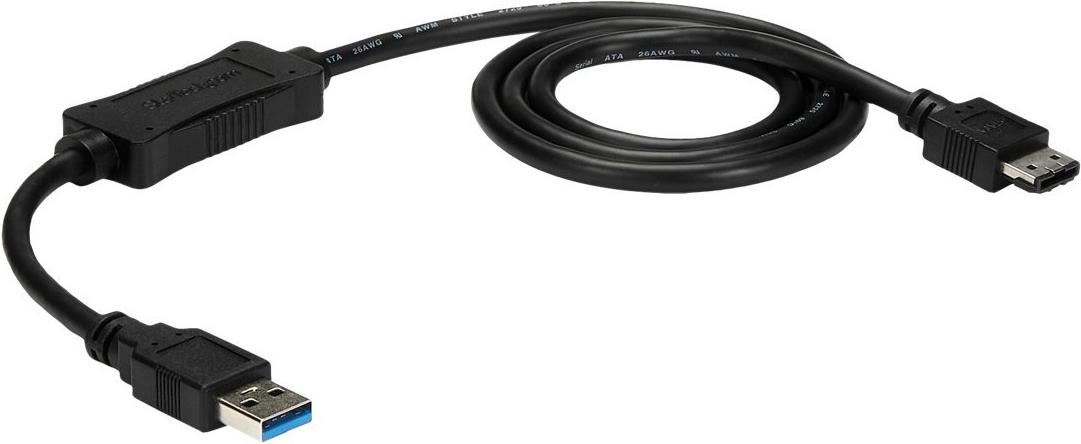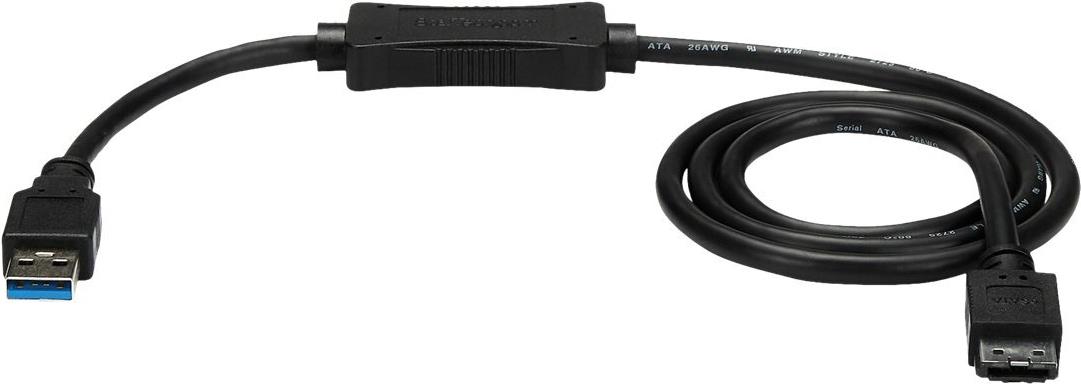 Mit dem USB 3.0-auf-eSATA-Laufwerkkabel USB3S2ESATA3 können Sie eine externe eSATA-Festplatte, ein Solid State-Laufwerk oder ein optisches Laufwerk an ein USB-fähiges Computersystem anschließen und haben damit eine hervorragende Lösung für Computer, die nativ eSATA nicht unterstützen, z. B. MacBook und Ultrabook .Um die Leistung zu optimieren und das Geschwindigkeitspotenzial von SATA-6-Gbit/s-Laufwerken zu nutzen, ist der USB 3.0-auf-eSATA-Adapter mit SATA Revisionen I/II/III kompatibel und unterstützt Übertragungsgeschwindigkeiten von bis zu 5 Gbit/s über USB 3.0.Dank Unterstützung für Blu-ray/DVD/CD ATAPI/ODD-Laufwerke und HDDs/SSDs mit hoher Kapazität (getestet bis zu 4 TB) ist das USB-auf-eSATA-Adapterkabel kompatibel mit praktisch jedem eSATA-Gerät und kann die Speicher-/Sicherungsfunktionen des betreffenden Computers deutlich steigern.Das USB 3.0-auf-eSATA-Laufwerkskabel gewährleistet eine problemlose Verbindung mit einfacher Plug&Play-Installation. Außerdem hat das Kabel die perfekte Länge (1 m), um ganz einfach die rückseitigen USB-Anschlüsse des Computers zu erreichen.Das USB3S2ESATA3 wird mit einer 2-jährigen StarTech.com-Garantie sowie lebenslanger kostenloser technischer Unterstützung geliefert.