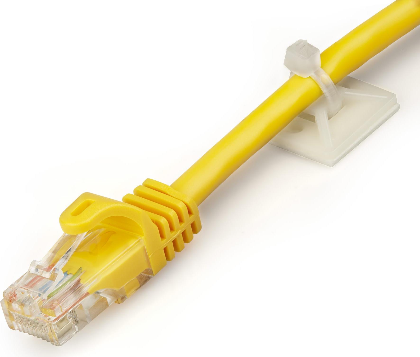 100 Stück | Für Kabelbinder bis zu einer Breite von 4,6 mm | Selbstklebend | TAAMit diesen mittelgroßen Kabelbinderhalterungen mit selbstklebender Rückseite können Sie Ihre Kabelbinder bequem an der Wand oder Decke befestigen, um Ihr Kabelbündel zu verlegen und zu organisieren. 100 weiße Kabelbinderhalterungen sind im Lieferumfang enthalten, sodass Sie genügend zur Hand haben.Einfache Montage und VerwendungDiese Kabelhüllenhalterungen aus Kunststoff sind für Kabelbinder bis zu 4,6 mm Durchmesser und beliebige Länge geeignet.Sie sind schnell und einfach zu installieren: Ziehen Sie einfach die Schutzfolie ab und kleben Sie sie an der gewünschten Stelle auf jede Oberfläche, einschließlich Kunststoff, Metall, Trockenbau, Holz oder Mauerwerk. Sobald die Halterung montiert ist, können Sie den Kabelbinder durch den Schlitz führen, Ihr Kabelbündel im Binder positionieren und den Kabelbinder schließen, um sowohl das Kabelbündel als auch den Kabelbinder an der Halterung zu befestigen. Für zusätzliche Sicherheit bei schwereren Kabelbündeln ermöglicht ein integriertes Montageloch (3,2 mm Durchmesser) die zusätzliche Befestigung der Halterung mit einer Schraube.Dieses saubere und professionelle Kabelbinder-Montagesystem eignet sich perfekt zum Organisieren und Verlegen von Netzwerkkabeln, Stromkabeln oder anderen Kabeln in Ihrem Büro oder Serverraum.Für industrielle Anwendung geeignetDiese aus strapazierfähigem Nylon 66 hergestellten Kabelbinderhalterungen mit einer starken 3M-Klebebeschichtung auf der Rückseite sind nach UL94 V-2 feuerbeständig und UL-zugelassen.Unterstützte StarTech.com KabelbinderStarTech.com bietet eine Vielzahl von Kabelbindern, die von diesen Halterungen unterstützt werden:100er Packung, 101,6 mm, weiße Kabelbinder (CBMZT4N)1000er Packung, 101,6 mm, weiße Kabelbinder (CBMZT4NK)100er Packung, 101,6 mm, schwarze Kabelbinder (CBMZT4B)1000er Packung, 101,6 mm, schwarze Kabelbinder (CBMZT4BK)100er Packung, 152,4 mm, weiße Kabelbinder (CV150)1000er Packung, 152,4 mm, weiße Kabelbinder (CV150K)100er Packung, 152,4 mm, weiße Kabelbinder (CBMZT6N)1000er Packung, 152,4 mm, weiße Kabelbinder (CBMZT6NK)100er Packung, 152,4 mm, schwarze Kabelbinder (CBMZT6B)1000er Packung, 152,4 mm, schwarze Kabelbinder (CBMZT6BK)100er Packung, 152,4 mm, weiße wiederverschließbare Kabelbinder (CBMZTRB6)100er Packung, 152,4 mm, schwarze wiederverschließbare Kabelbinder (CBMZTRB6BK)100er Packung, 203,2 mm, graue Kabelbinder (CV200K)100er Packung, 203,2 mm, weiße wiederverschließbare Kabelbinder (CBMZTRB8)100er Packung, 203,2 mm, weiße wiederverschließbare Kabelbinder (CBMZTRB8BK)The StarTech.com AdvantageHauptmerkmale