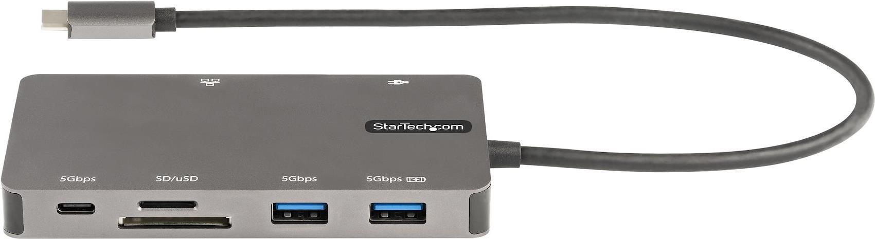 Dieser USB-C Multiport Adapter unterstützt 4K 30Hz HDMI oder 1080p VGA und verwandelt Ihr MacBook Pro, Dell XPS oder andere USB-C Laptops oder Tablets in eine Workstation, egal wo Sie sind. Der USB Typ-C Multiport Adapter bietet 4k HDMI oder 1080p VGA Videoausgang, zwei USB 3.1 Gen 1 Typ-A (5Gbit/s) Anschlusse (einschließlich 1x Fast Charge Anschluss), einen einzelnen USB 3.1 Gen 1 Typ-C (5Gbit/s) Anschluss, einen SD/MicroSD Kartenleser und einen Gigabit-Ethernet Anschluss, alles über eine Verbindung zum USB-C oder Thunderbolt 3/4 Anschluss Ihres Laptops. Darüber hinaus bietet es fortschrittliches Laden über USB Power Delivery 3.0 und ein langes, angeschlossenes 30 cm Kabel für eine größere Reichweite, um mehr Flexibilität bei der Einrichtung zu bieten. USB 3.1 Gen 1 (5Gbit/s) ist auch als USB 3.2 Gen 1 (5Gbit/s) und USB 3.0 (5Gbit/s) bekannt.