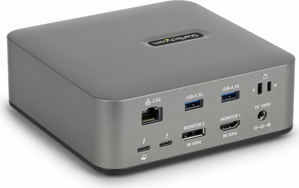 Die Dockingstation von StarTech.com verbessert die Konnektivität und erweitert die Funktionen Ihres Tablets oder Laptops. Mit einem Thunderbolt 5-Kabel und einer Datenübertragungsrate von bis zu 40 Gbit/s ermöglicht diese Dockingstation mehrere Verbindungen ohne Leistungseinbußen. Mit HDMI-, DisplayPort- und USB-C-Schnittstellen ist sie für verschiedene Geräte geeignet und gewährleistet Flexibilität und Benutzerfreundlichkeit.