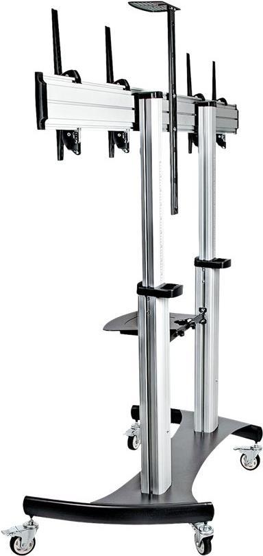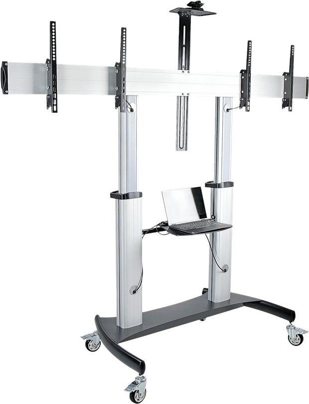 Mit diesem mobilen Doppel TV Ständer können Sie ein rollendes AV-Medienzentrum einrichten, das sich leicht in Klassenzimmern, Büros, Sitzungssälen, Konferenzen oder Lernumgebungen bewegen lässt.Für eine bessere Stabilität und Sicherheit wurde der mobile Wagen mit einem großen Sockel von 1,22 m x 0,71 m ausgestattet, auf dem Sie zwei Bildschirme von 37\" bis 60\" mit einem Gewicht von jeweils bis zu 50 kg montieren können.Produkttext[/head]Doppel TV-Wagen | Multimedia-Geräteablage | Für 37\" bis 60\" BildschirmeMit diesem mobilen Doppel TV Ständer können Sie ein rollendes AV-Medienzentrum einrichten, das sich leicht in Klassenzimmern, Büros, Sitzungssälen, Konferenzen oder Lernumgebungen bewegen lässt.Für eine bessere Stabilität und Sicherheit wurde der mobile Wagen mit einem großen Sockel von 1,22 m x 0,71 m ausgestattet, auf dem Sie zwei Bildschirme von 37\" bis 60\" mit einem Gewicht von jeweils bis zu 50 kg montieren können.Vollständig an Ihr Setup anpassbarDieser mobile TV Ständer mit Halterung passt sich an die verschiedenen Aufstellungen an, die Sie in Ihrem Büro vorfinden können. Sie können die Höhe Ihres Bildschirms von 1,2 m bis 1,68 m von der Mitte des Fernsehgeräts bis zum Boden einstellen, und die mitgelieferten Einstellindikatoren ermöglichen Ihnen eine präzise Einstellung der idealen Sichthöhe. Zusätzlich erleichtern die Höheneinstellungsindikatoren die Installation und ermöglichen es Ihnen, die bevorzugte Höhe für bestimmte Umgebungen zu notieren. Sie können den Betrachtungswinkel auch individuell innerhalb von +5/-10° neigen, um ihn optimal an Ihre Umgebung anzupassen und Blendeffekte zu reduzieren. Mit den mitgelieferten, feststellbaren Rollen lässt sich das TV Ständer leicht von einem Ort zum anderen bewegen.Platz für Ihre AV-GeräteDieser mobile Universalwagen bietet zwei unabhängig voneinander verstellbare Geräteablagen (Webcam-Ablage und Geräteablage), die jeweils eine Unterstützung von bis zu 5 kg bieten. Die Webcam-Ablage kann auf bis zu 2,37 m angehoben werden, während die Geräteablage auf bis zu 0,90 m vom Boden angehoben werden kann.Langlebige KonstruktionDie langlebige Konstruktion des robusten TV Ständers macht ihn ideal für den kommerziellen Einsatz in Umgebungen mit mehreren Benutzern und häufigem Wechsel zwischen verschiedenen Bereichen. Das integrierte Kabelmanagement sorgt dafür, dass Ihre Kabel geordnet und unsichtbar bleiben.Für das STNDMTVDUO gewährt StarTech.com eine 2-jährige Garantie, einschließlich eines kostenlosen, lebenslangen, mehrsprachigen technischen Kundendienstes (24/5).The StarTech.com Advantage[head]Hauptmerkmale