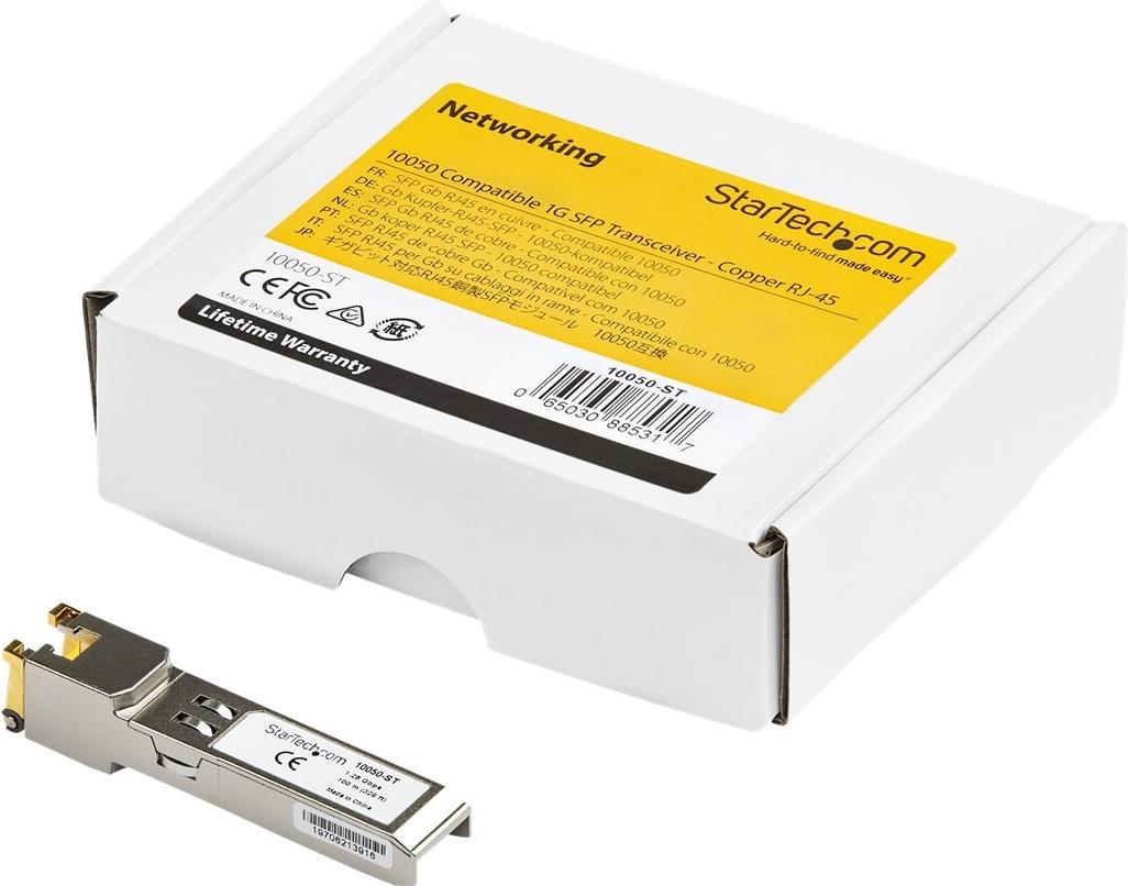 StarTech.com 10050-ST Transceiver Modul (SFP Module, 10/100/1000Base-TX Extreme Networks kompatibel, Kupfer, RJ-45 Kupfer mit DDM) - SFP (Mini-GBIC)-Transceiver-Modul (gleichwertig mit: Extreme Networks 10050) - GigE - 10Base-T, 100Base-TX, 1000Base-T - RJ-45 - bis zu 100 m