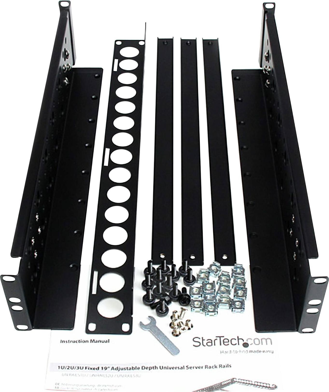 Montieren Sie 19-Zoll Server- oder Netzwerk-Hardware mit diesen universellen 2U-Rackschienen mit anpassbarer Tiefe in jedes Standardrack. Mit diesen 2HE Serverrack-Schienen können Sie Geräte, die nicht für die Rackmontage geeignet sind, wie z. B. Desktop-Server, Netzwerk-Ausrüstung oder KVM-Switches, in Ihrem 19"-Serverrack montieren, ohne dass Sie wie bei einem herkömmlichen Fachboden 1HE zusätzlichen Platz im Rack einbüßen. Die Rackschienen sind auch eine großartige Lösung für die Montage von Geräten mit beschädigten Schienen oder abgekündigten OEM-Geräten wie Dell ; IBM ; HP oder Apple-Servern, für die keine Rackschienen mehr verfügbar sind. Verwandeln Sie Geräte die nicht für die Rackmontage geeignet sind in 2HE Rackmount-Hardware Diese Rackschienen fügen Ihren nicht in einem Rack montierten Geräten eine Rackmontage-Funktionalität hinzu, indem sie Ihre Geräte in einem offenen Rahmen mit drei robusten Querstreben halten. Sie können Ihre Geräte, die nicht für die Rackmontage geeignet sind, montieren, indem Sie die Schienen an Ihrem Serverrack befestigen und Ihre Geräte auf das Untergestell stellen. Für Geräte, die bereits über Befestigungslöcher verfügen, sind die Schienen mit mehreren Funktionen ausgestattet, um Ihre Geräte zu sichern und so ein zusätzliches Maß an Sicherheit zu gewährleisten. Universelles Design für die Montage in nahezu jedem 19"-Serverrack Diese Montageschienen entsprechen dem EIA-310-Standard für 19 Zoll Rackmontage-Geräte und sind universell mit 19"-Serverracks kompatibel. Die Tiefe ist für eine Vielzahl von Rack-Größen und -Konfigurationen einstellbar. Außerdem gibt es eine abnehmbare Platte für das Kabelmanagement auf der Rückseite, die zusätzliche Anpassungen ermöglicht. Maximale Haltbarkeit Um die Sicherheit Ihrer Geräte zu gewährleisten, sind diese Montageschienen mit einer kaltgewalzten Stahlkonstruktion ausgestattet. Die robuste Konstruktion kann eine Gewichtsbelastung von bis zu 45kg tragen.