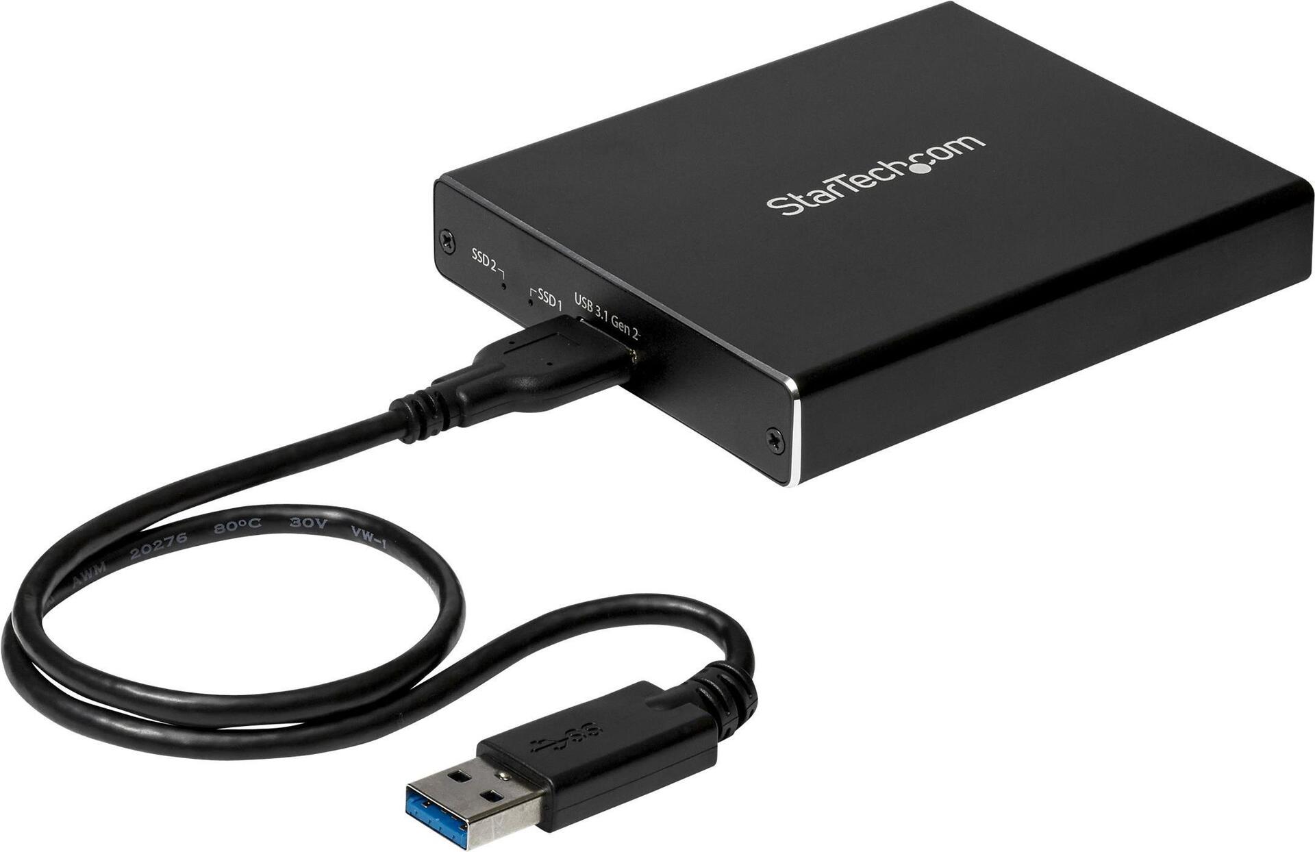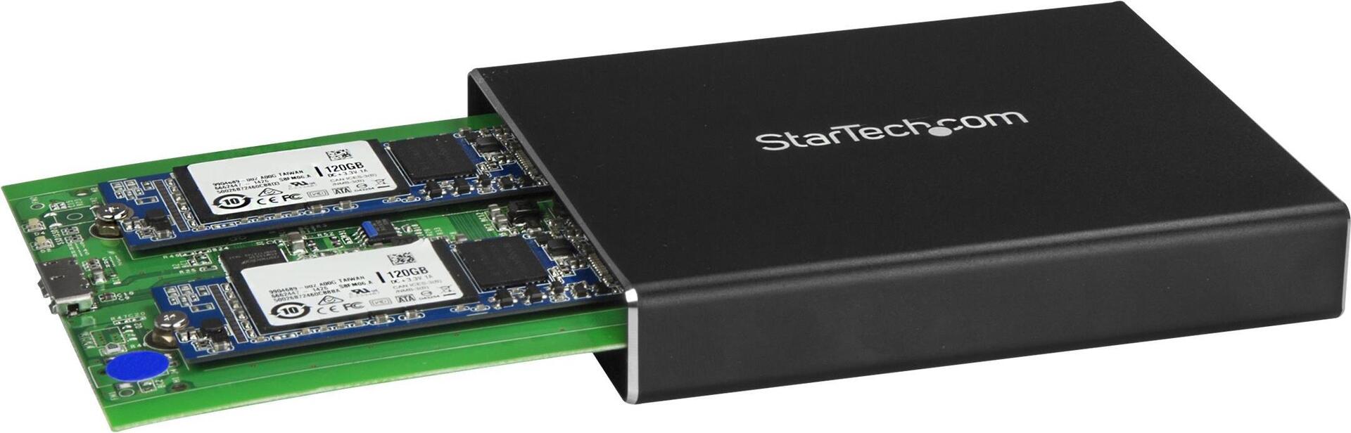 | Produktbeschreibung | StarTech.com Dual M.2 Festplattengehäuse - RAID - M.2 NGFF SATA SSD Gehäuse - USB 3.1 - USB C / USB A Festplattengehäuse - Aluminium - Flash-Speicher-Array |