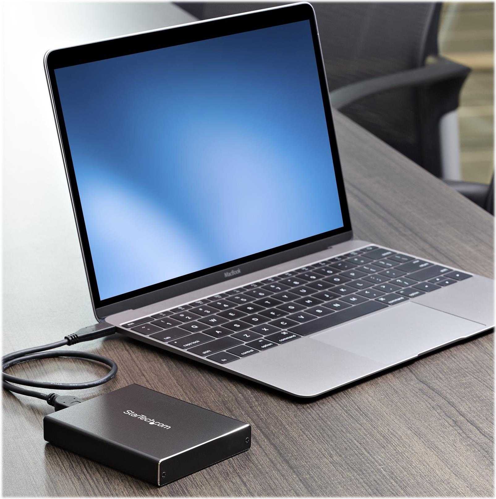 Das M.2-SATA-RAID-Gehäuse bezieht seinen Strom direkt vom USB-Port Ihres Geräts, d. h., es ist keine externe Stromversorgung erforderlich. Im Lieferumfang enthalten sind zwei USB-Kabel (USB-C zu Micro-B und USB-A zu Micro-B) für die flexible Verwendung mit den neuesten Laptops und Tablets mit USB Type-C -Port sowie mit älteren Geräten. Das Gehäuse ist betriebssystemunabhängig und erfordert keine zusätzliche Software- oder Treiberinstallation. Zudem ist es mit Thunderbolt 3-USB-C-Ports kompatibel.
