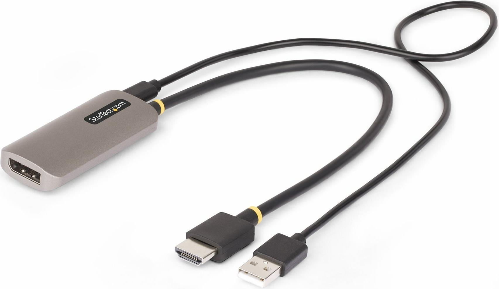Dieser HDMI zu DP-Adapter verfügt über ein 30cm langes Kabel zwischen den HDMI- und DP-Anschlüssen, wodurch die Belastung der Anschlüsse und Verbindungen reduziert wird. Der Adapter enthält ein 50cm langes USB-Stromkabel, das an einen mit Strom versorgten USB-Anschluss am Laptop oder an ein USB-Wandladegerät angeschlossen werden muss. Strom wird für den Betrieb des Adapters benötigt.