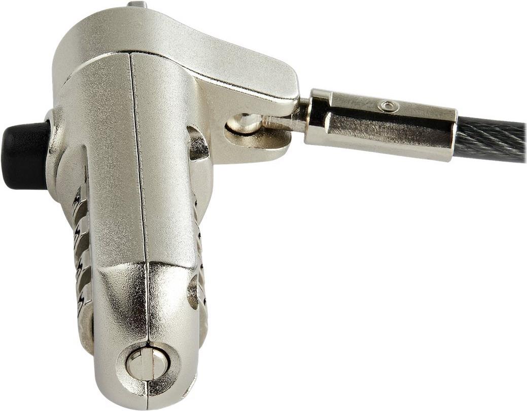 Mit einem vinylbeschichtetem Stahlkabel stellt dieses 2 Meter lange Notebookschloss einen effektiven Schutz vor Diebstahl dar. Das tragbare Kombinations-Notebookschloss bietet auch einen hilfreichen Rücksetzvorgang, wenn die ursprüngliche Kombination bekannt ist (kleiner Schlitzschraubendreher erforderlich).