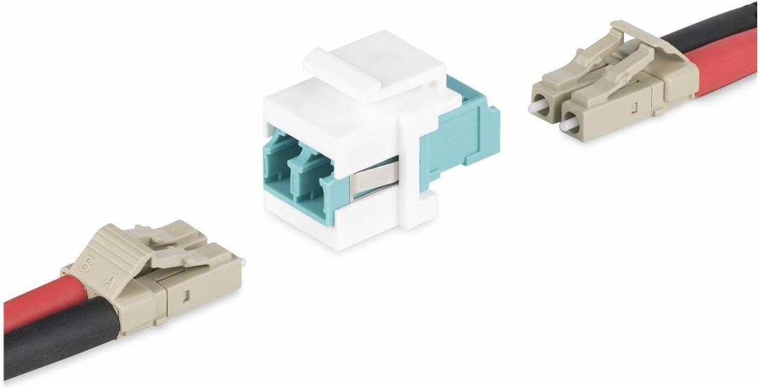 Der LC Glasfaserverbinder unterstützt Single Mode und Multimode LC/LC Glasfaserkabel. Er ist kompatibel mit OS1/OS2 (9/125µm) und OM1/OM2/OM3/OM4/OM5 (62,5/125µm und 50/125µm) Faserkernen/-mänteln. Die Kupplung passt sicher in die Keystone-Buchse, die ohne zusätzliches Werkzeug in einem Keystone-Patchpanel oder einer Wandplatte installiert werden kann..