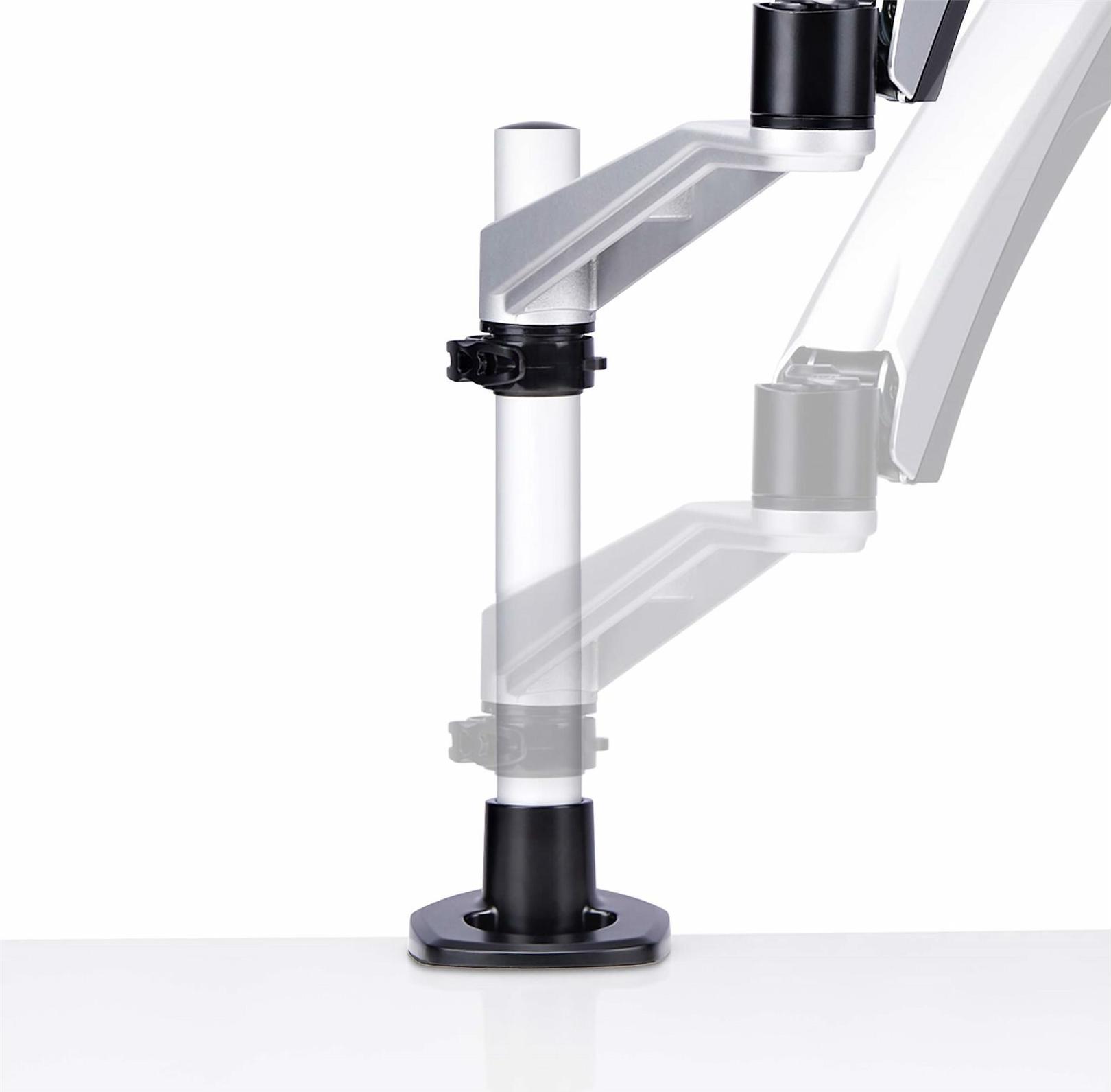 Der Federarm ermöglicht eine werkzeuglose Höhenverstellung von bis zu 270mm mit einem einzigen Knopfdruck. Für weitere Einstellungen positionieren Sie den Arm entlang der 302mm langen Säule für verschiedene Höhenbereiche. Der Arm kann bis zu 590mm vom Mast ausfahren.
