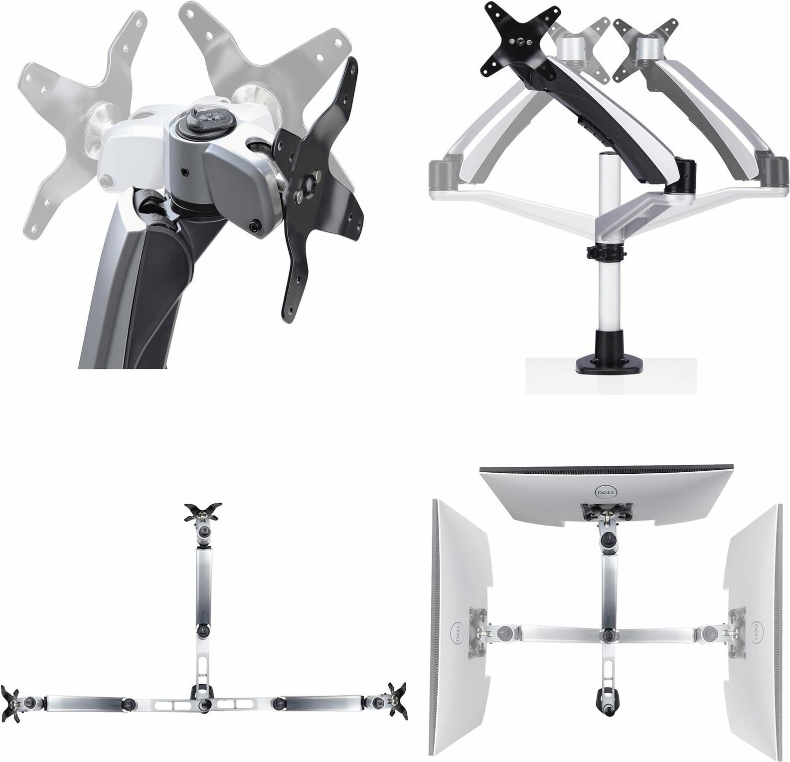 Der Gelenkarm ermöglicht werkzeuglose Einstellungen von +/-180& Grad; horizontales Schwenken, 105& Grad; Neigen, 240& Grad; Schwenken und 360& Grad; Bildschirmdrehung auf der VESA-Platte für Hoch- oder Querformatausrichtungen. Dank dieser Flexibilität können Sie die Platzierung des Bildschirms für maximale Produktivität und Komfort individuell anpassen.