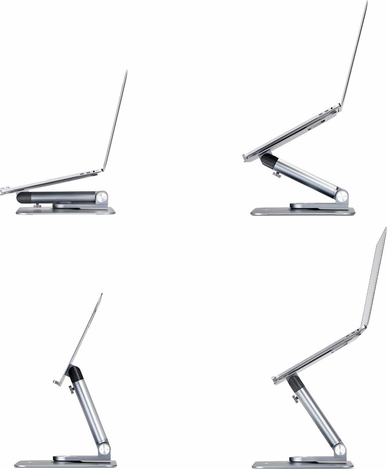 Mit einer maximalen Belastbarkeit von 5 kg eignet sich dieser robuste Ständer für verschiedene Laptop-Größen. Durch die Verstellung der Höhe und Neigung können Benutzer ihre Einrichtung sowohl für die sitzende als auch für die stehende Position anpassen. Die praktischen Funktionen in Kombination mit einem eleganten Design machen diesen Notebook-Ständer ideal für zu Hause und im Büro und sorgen dafür, dass Komfort und Produktivität Hand in Hand gehen.