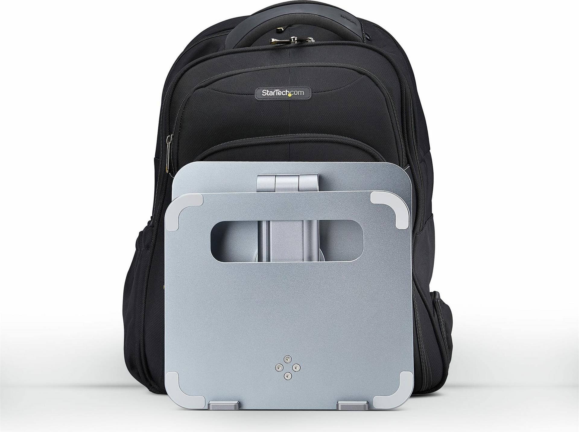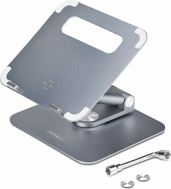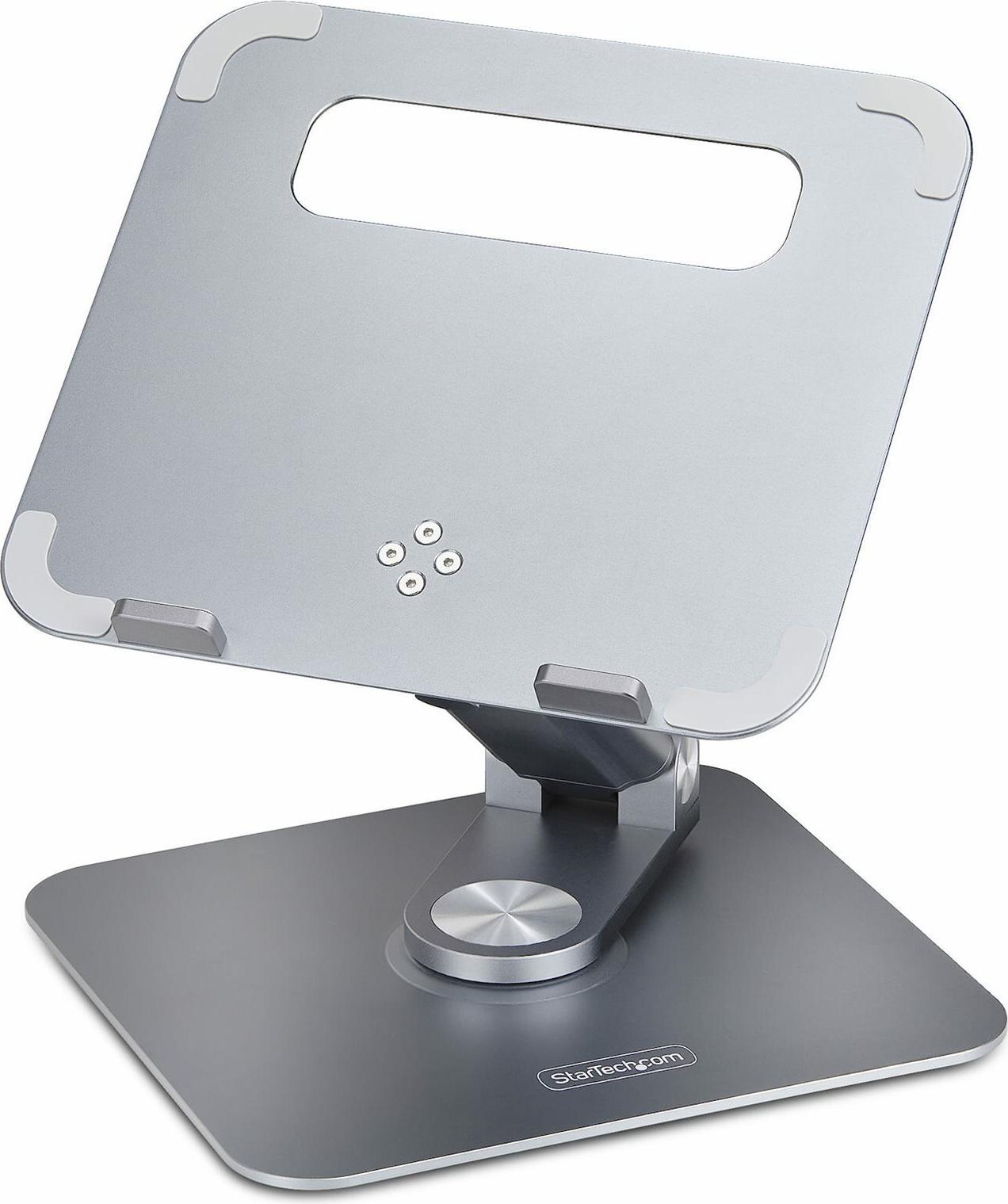 Der StarTech.com Notebook-Ständer bietet eine vielseitige und ergonomische Lösung für Laptop-Benutzer. Dieser Laptop-Ständer mit schlankem Aluminiumgehäuse lässt sich um 360° drehen und teleskopisch in der Höhe verstellen, um optimalen Sehkomfort und eine gute Körperhaltung zu gewährleisten. Das klappbare Design erleichtert den Transport, während die passive Luftzirkulation dafür sorgt, dass Ihr Gerät während des Gebrauchs kühl bleibt. Gummi- und Anti-Rutsch-Pads halten Ihren Laptop sicher an seinem Platz und sorgen auch bei aktiven Arbeitssitzungen für Stabilität.