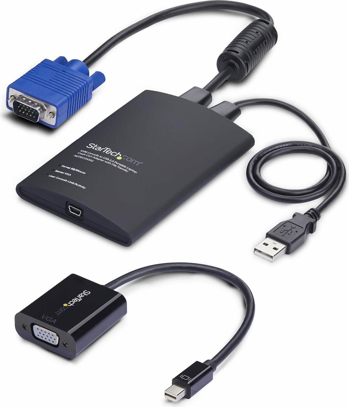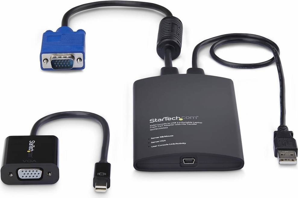 Schließen Sie den Laptop-Crash-Cart-Adapter einfach mit dem mitgelieferten USB-Kabel an Ihren Computer an und verbinden Sie dann die integrierten USB- und VGA-Kabel mit Ihrem Server, um eine sofortige Steuerung auf BIOS-Ebene zu ermöglichen. Verwenden Sie den mitgelieferten Mini DisplayPort-Adapter für den Anschluss an mDP-fähige Computer oder Server. Da keine serverseitige Software erforderlich ist, können Sie sofort loslegen.