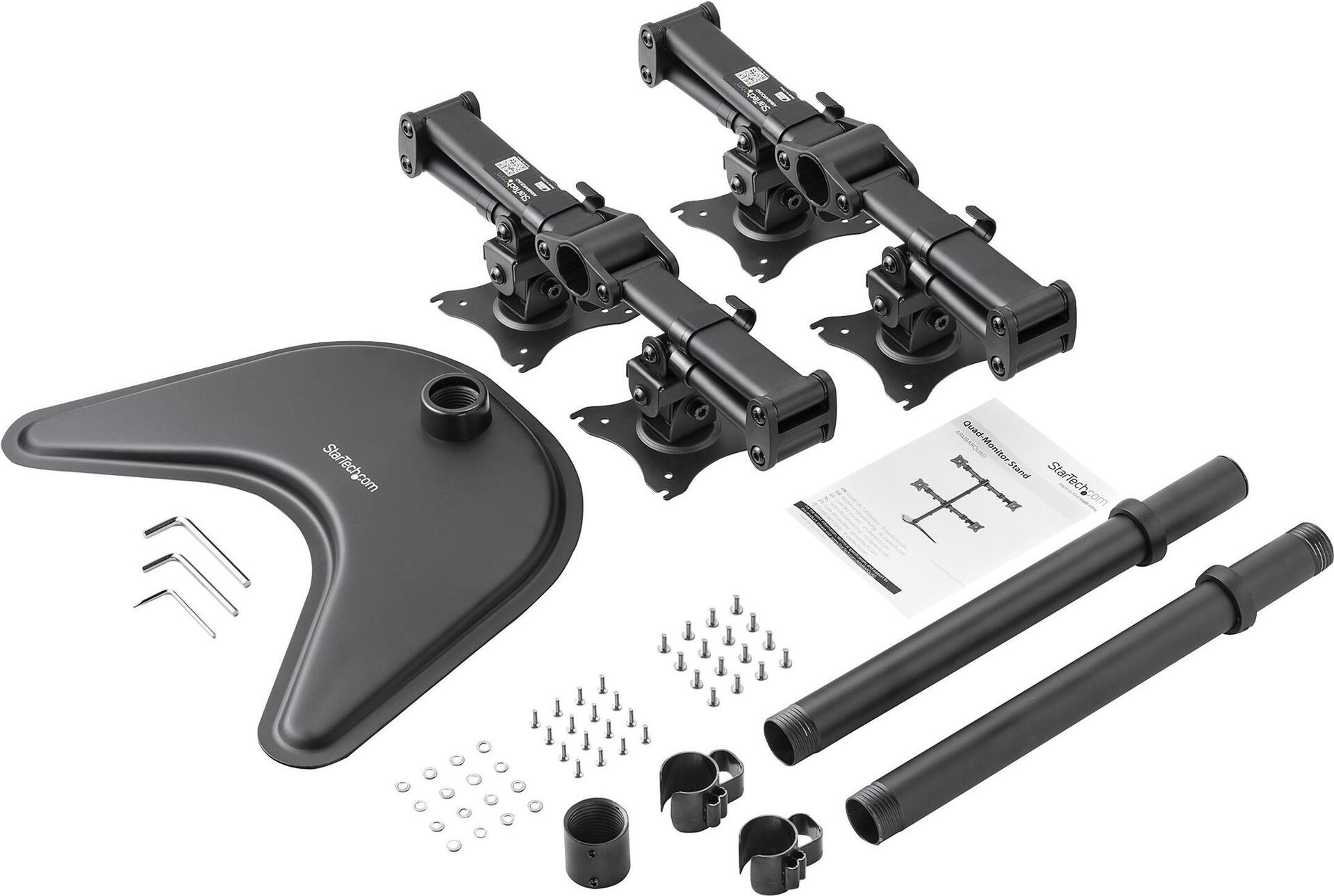StarTech.com Vierfach-Monitorhalter - Schwenkbar - Verstellbarer 4 Monitorständer - Für VESA Monitore bis zu 68,60cm (27") (8 Kg) - Aufstellung für 4 Monitore - Aluminium, stabiler Stahl - Schwarz - Bildschirmgröße: 33-68.6 cm (13"-27") - Desktop-Ständer