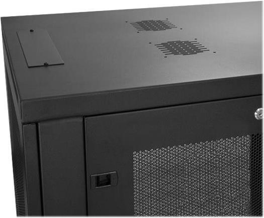 Das Rack verfügt über abgedeckte Löcher an Boden- und Deckenwänden, die ein unauffälliges Kabelmanagement erlauben, da sich Kabel durch diese Löcher problemlos ins Schrankinnere und -äußere verlegen lassen. Außerdem besitzt das Rack Erdungsösen, über die Sie den Schutz Ihrer Geräte durch Erdung erhöhen können. Dieses Rack verfügt außerdem über einen 1HE-Regalboden, der eine stabile Oberfläche für die Aufbewahrung nicht einbaufähiger Geräte oder für die Lagerung Ihrer Werkzeuge schafft.