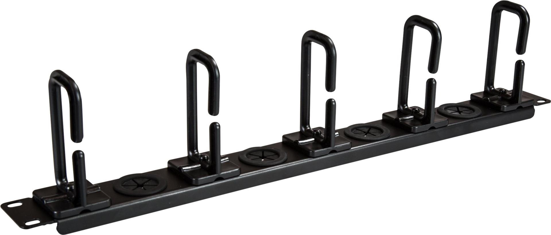 Dieses Kabelordner-Panel spart mit seinem 1U-Design Höheneinheiten-Platz in Ihrem Rack. Das Panel ist unaufdringlich, bietet aber dennoch mit einer Kombination aus fünf D-Ring-Haken und vier Kabel-Löchern genug Platz für Ihre Kabel.
