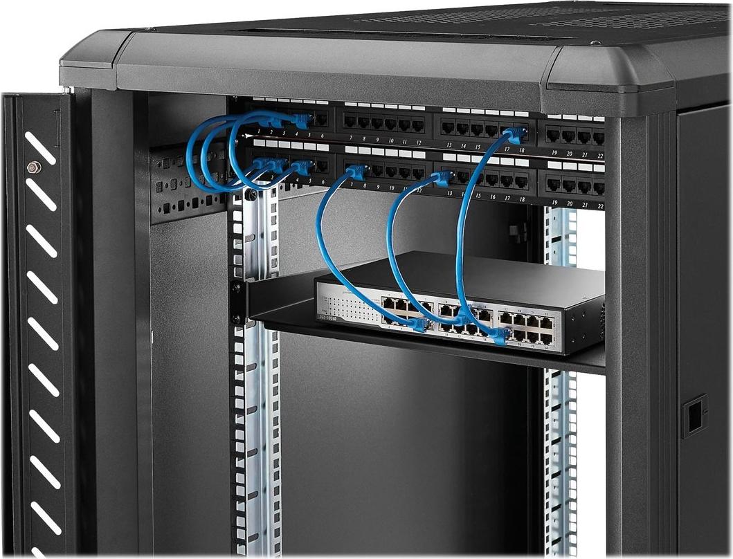Mit diesem 1 HE Rack-Fachboden ergänzen Sie EIA-310-konforme Server-Racks oder -Schränke um 25 cm flachen Stauraum.