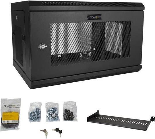 StarTech.com 6HE wandmontage Server Rack - bis zu 43cm tief - Gehäuse mit Scharnier - Netzwerkschrank - Server Schrank - Schrank für Rack-Gehäuse - Wand montierbar - Schwarz - 6U