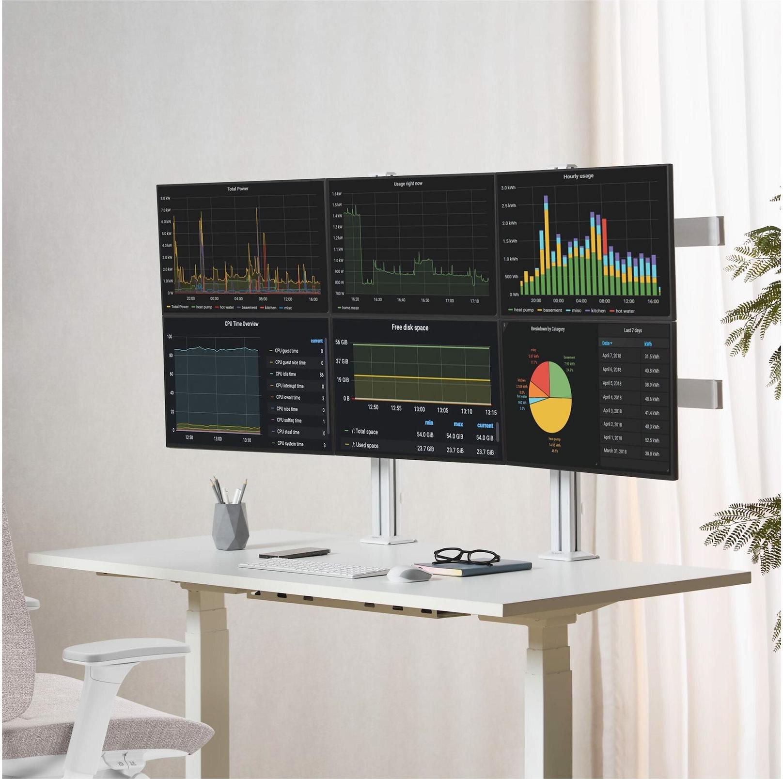 Desktop Monitorhalterung für bis zu sechs 32" Monitore, schwenkbar und höhenverstellbar. Kompatibel mit VESA 75x75/100x100.