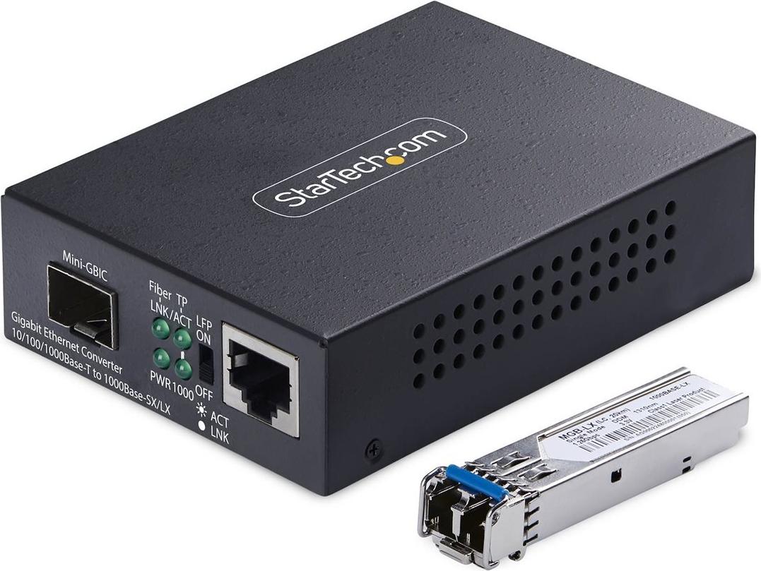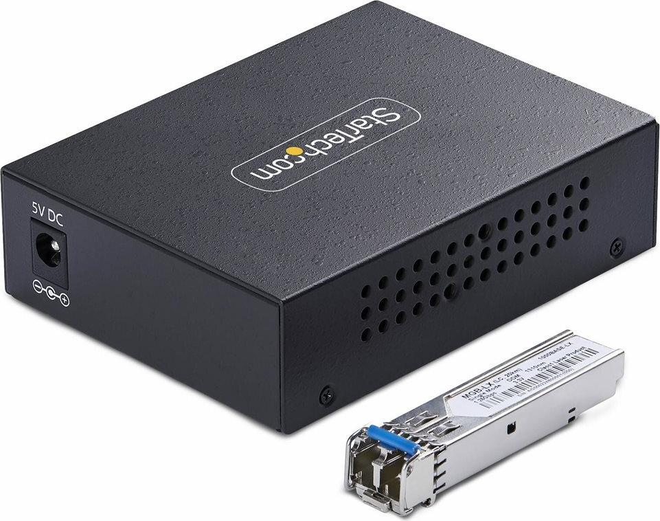 Der Glasfaser-Medienkonverter MCM1110SMLC20 von StarTech.com bietet eine Lösung für die Konvertierung zwischen verschiedenen Ethernet-Standards. Er unterstützt eine Datenübertragungsrate von 1 Gbit/s über mehrere Protokolle hinweg, darunter Gigabit Ethernet und Fast Ethernet. Mit seinem robusten Metallgehäuse und seiner kompakten Bauweise eignet sich dieser Konverter für die Montage auf dem Schreibtisch, an der Wand oder auf einer DIN-Schiene und ist somit die ideale Wahl für verschiedene Umgebungen.