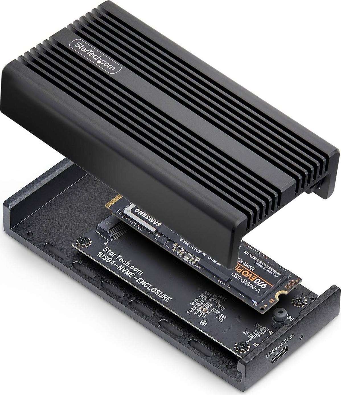 Dieses USB4-Gehäuse ist für aktuelle und Next-Gen Speicherlösungen konzipiert und verbindet M-Key- oder B+M-Key M.2 NVMe SSDs (2230, 2242, 2260, 2280) mit USB4, Thunderbolt 5, 4, 3 oder USB 3.2 Geräten. Es unterstützt PCIe Gen-4x4 NVMe-Laufwerke und bietet native, treiberlose Kompatibilität mit Windows, macOS und Linux. Dank nahtloser Interoperabilität mit USB-C und Thunderbolt-Systemen ist es ideal für schnelle Backups und umfangreiche Datenübertragungen.