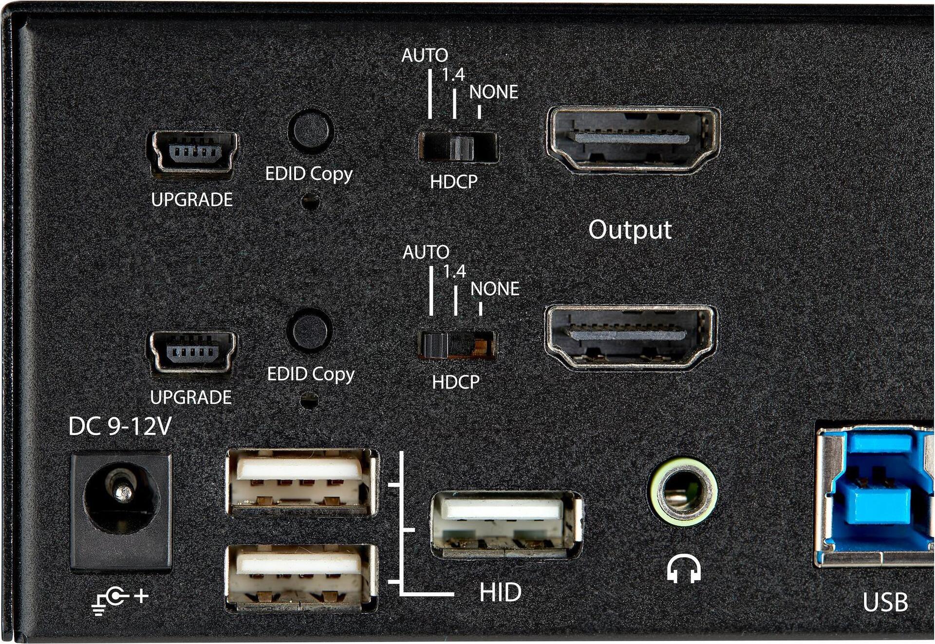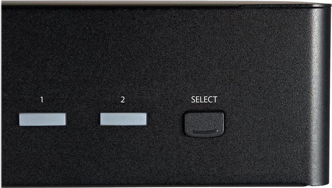 Dieser KVM-Switch mit zwei Anschlüssen kombiniert digitale 4K-Displayfunktionen (60 Hz) mit der Steuerung von zwei angeschlossenen Computern.