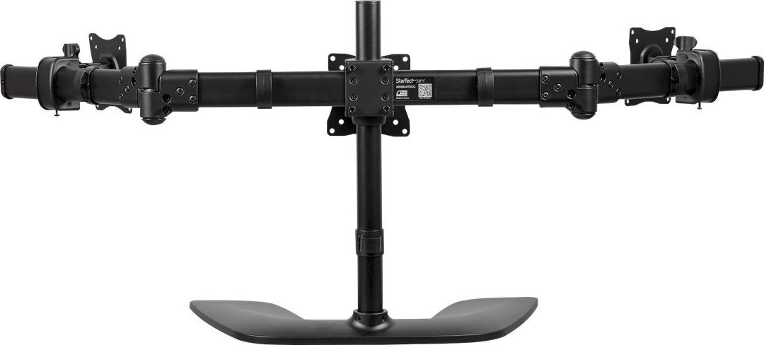 Dieser frei stehende Dreifach-Monitorhalter schafft wertvollen Platz auf Ihrem Schreibtisch und ermöglicht Ihnen gleichzeitig die komfortable und ergonomische Gestaltung Ihres Arbeitsplatzes. Der robuste Monitorhalter ist aus hochwertigem Stahl gefertigt und ermöglicht das Abhängen von bis zu drei Monitoren oberhalb Ihres Schreibtisches oder einer anderen Arbeitsfläche. Mehr Komfort und Produktivität bei der Arbeit Räumen Sie Ihre Schreibtischfläche auf und gestalten Sie einen ergonomischen Arbeitsplatz. Dieser Computer-Monitorhalter kann drei 13 Zoll bis 27 Zoll große, jeweils bis zu 8 kg schwere Bildschirme tragen und steigert so Ihre Effizienz und Produktivität. Er ist ideal geeignet für Büros, Leitstellen, Banken, Immobilien- und sonstigen Echtzeitumgebungen, in denen mehrere Monitore wichtig für die Produktivität sind. Stellen Sie Ihre Monitore mithilfe der Gelenkarme auf die ideale Position ein. Justieren Sie die Position Ihres Bildschirms einfach durch Drehen bis zu 360°, Neigen bis zu 30° aufwärts oder abwärts und Schwenken in einem Bereich von +30°/-30°. Die Struktur ermöglicht leichtgängiges, müheloses Drehen und Positionieren in jede beliebige Richtung und erleichtert Ihnen so, den optimalen Sichtwinkel mit geringen Blendeffekten zu finden. Die Mikroverstellung ermöglicht eine eine ebene Ausrichtung. Zur Entlastung von Nacken und Augen können Sie zudem die Höhe Ihrer Monitore entlang des vertikalen Pfostens bis zu einer maximalen Höhenanpassung von 424 mm einstellen. Wählen Sie zur individuellen Gestaltung Ihres Arbeitsplatzes aus, ob Sie den Bildschirm im Quer- oder Hochformat nutzen wollen. Positionieren Sie für eine angenehme Betrachtungsposition drei Displays im Querformat und schaffen Sie damit einen gebogenen Surround-Effekt oder „Cockpit-Stil". Robuste Stahlkonstruktion Mit seiner robiusten Stahlkonstruktion und dem Aluminiumfuß hält der Dreifach-Monitorständer Ihre Monitore sicher und bietet dauerhafte Leistung. Zudem ist die Oberfläche kratzfest. Einfache Installation Die Monitorhalterung wurde für einfache Installation auf Ihrem Schreibtisch, Tisch oder einer anderen Arbeitsfläche entwickelt. Die Monitorhalterung verfügt zudem über Kabelklammern, mit denen Sie Ihre Kabel unsichtbar aufbewahren können und so jegliches Durcheinander an Ihrem Arbeitsplatz vermeiden. Der ARMBARTRIO2 wird von StarTech.com mit einer 5-Jahres-Garantie sowie lebenslangem kostenlosem technischem Support angeboten.