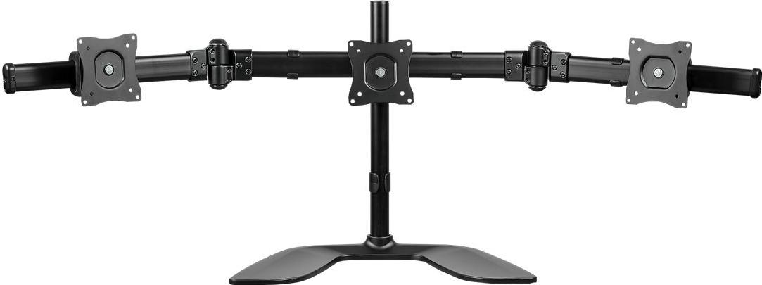 StarTech.com Dreifach Monitorhalterung - Schwenkbar - Stahl und Aluminium - für VESA Monitore bis zu 68,60cm (27") - 3fach Monitorarm - Aufstellung (Abschlusskappen, Stange, Bodenplatte, Querstange, Unterlegscheiben, Schrauben, Manschette, 2 Monitorarme, VESA-Halterung, 2 Griffschrauben) für 3 Monitore (einstellbarer Arm) - Kunststoff, Aluminium, Stahl - Schwarz - Bildschirmgröße: 33-68.6 cm (13"-27") - für Standfußmontage geeignet