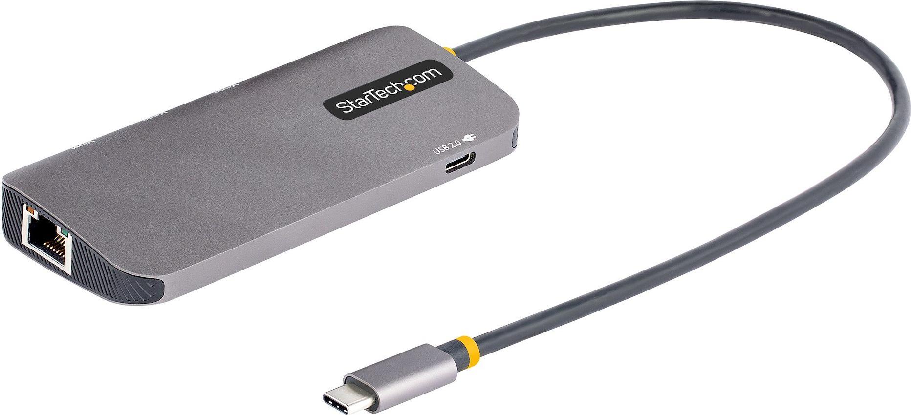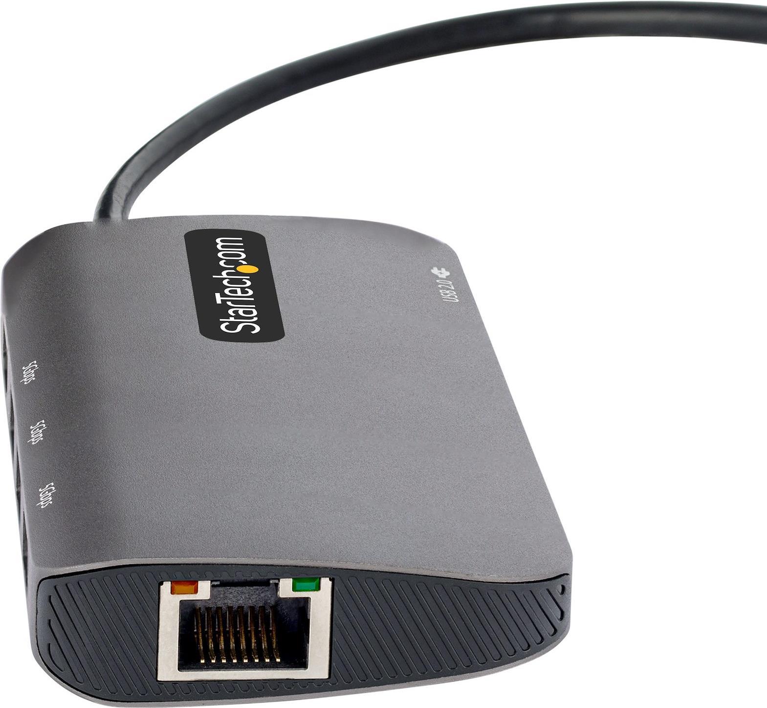 Dieser USB-C Multiport Adapter mit DP 1.4 Alt Mode unterstützt 4K 60Hz HDMI (HDR) und verwandelt Ihr MacBook, Dell XPS oder ein anderes USB-C Laptop oder Tablet in einen Arbeitsplatz, egal wo Sie hingehen. Der USB Typ-C Multiport Adapter verfügt über einen 4k HDMI Video Ausgang, drei USB 3.2 Gen 1 Typ-A (5Gbit/s) Anschlüsse und einen Gigabit-Ethernet Anschluss, alles über einen Anschluss an den USB-C, USB4 oder Thunderbolt 3/4 Anschluss Ihres Laptops. Darüber hinaus bietet er fortschrittliches Laden und Flexibilität durch einen gemeinsamen USB-C Power Delivery 3.0 und Daten Anschluss; dieser Anschluss kann verwendet werden, um Peripheriegeräte mit USB 2.0 Datenübertragungsgeschwindigkeiten (480Mbps) zu verbinden, wenn keine Stromquelle angeschlossen ist. Der Multiport Adapter verfügt über ein extra langes integriertes, 30 cm Host Kabel - für eine verlängerte Reichweite, um mehr Flexibilität bei der Einrichtung zu bieten.