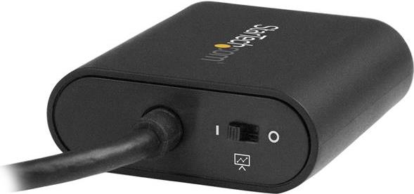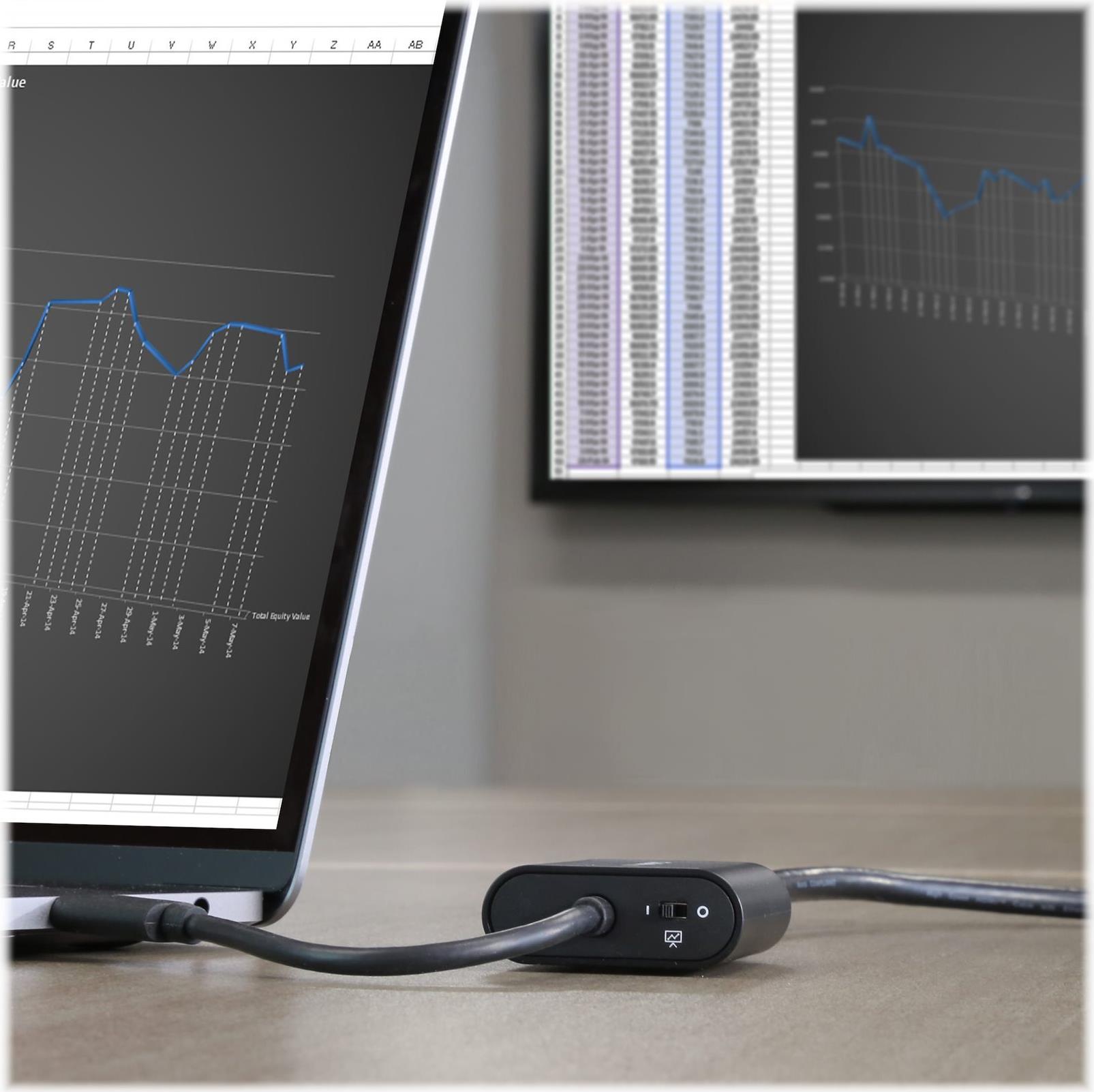 Je nach Anwendung, können Sie den Präsentationsmodus ein- oder ausschalten. Schalten Sie ihn ein, wenn Sie im Besprechungsraum sind und möchten, dass Ihr Bildschirm eingeschaltet bleibt, und schalten Sie ihn aus, wenn Sie den Adapter an Ihrem Arbeitsplatz oder Büroschreibtisch verwenden, sodass die ursprünglichen Energieeinstellungen Ihres Computers in Kraft treten. Die Nutzung des Kippschalters ist einfach und erspart Ihnen die Mühe, konstant Anpassungen an den Einstellungen Ihres Betriebssystems vornehmen zu müssen.