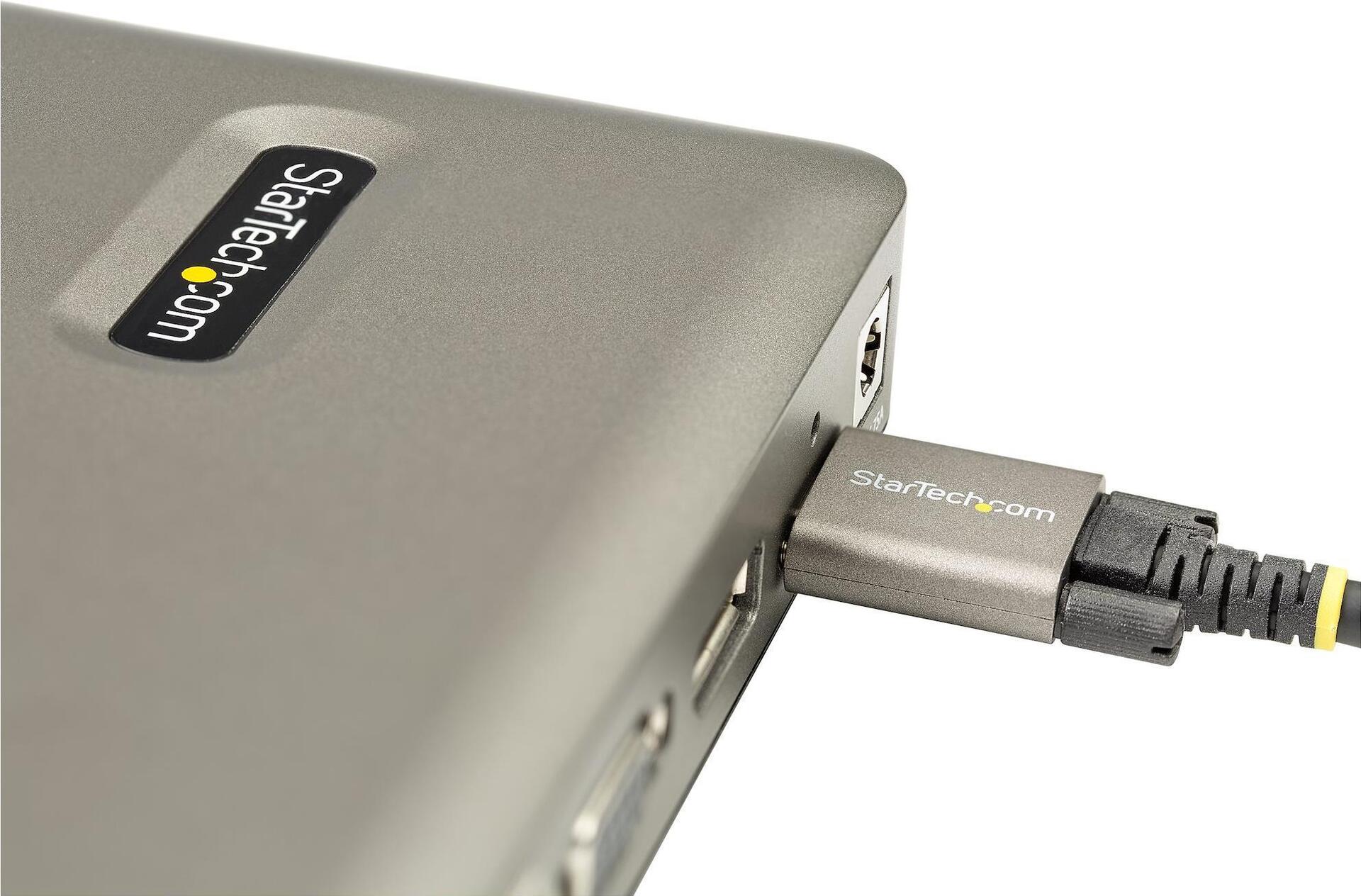 | Leistungsmerkmale | Pass-Through-Ladung von bis zu 65 W, Unterstützung von Preboot Execution Evironment (PXE), Wake-On-LAN, Slot für Sicherheitsschloss (Kabelschloss getrennt erhältlich), LED-Anzeige, Vollduplex-Unterstützung, Plastikgehäuse |