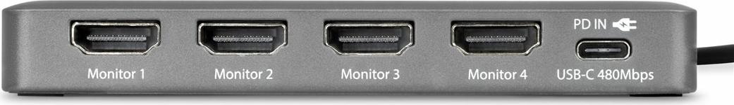 Der StarTech.com QUAD-USB-HDMI-ADAPT ist eine vielseitige Dockingstation für Benutzer, die ihre Anzeigefunktionen erweitern möchten. Er kann bis zu vier HDMI-Bildschirme gleichzeitig anschließen und ermöglicht so effizientes Multitasking und höhere Produktivität. Die Dockingstation unterstützt eine maximale Auflösung von 4K bei einer Bildwiederholfrequenz von 60 Hz und sorgt so für gestochen scharfe und lebendige Bilder bei allen Anwendungen. Die USB-C-Hostkabel-Funktionalität vereinfacht die Verbindungen, während die USB-Pass-Through-Funktion Datenübertragungen mit Geschwindigkeiten von bis zu 480 Mbit/s ermöglicht, sodass sie sowohl für Arbeits- als auch für Unterhaltungszwecke geeignet ist. Das Gerät unterstützt außerdem eine Stromversorgung von bis zu 140 W, wodurch der Bedarf an zusätzlichen Stromquellen während des Betriebs minimiert wird.