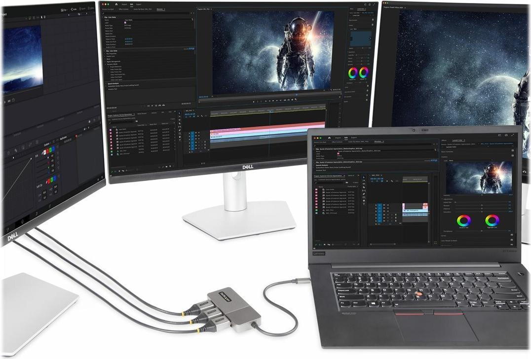Erstellen Sie eine leistungsstarke Workstation mit drei Bildschirmen, indem Sie ein USB Typ-C Gerät mit drei unabhängigen DisplayPort Bildschirmen verbinden