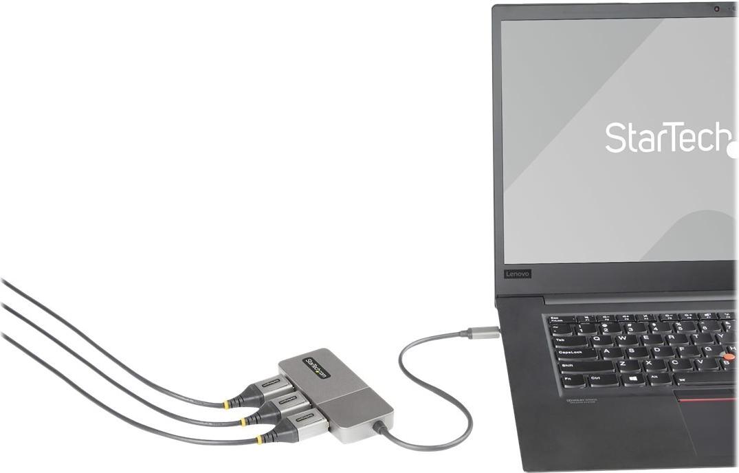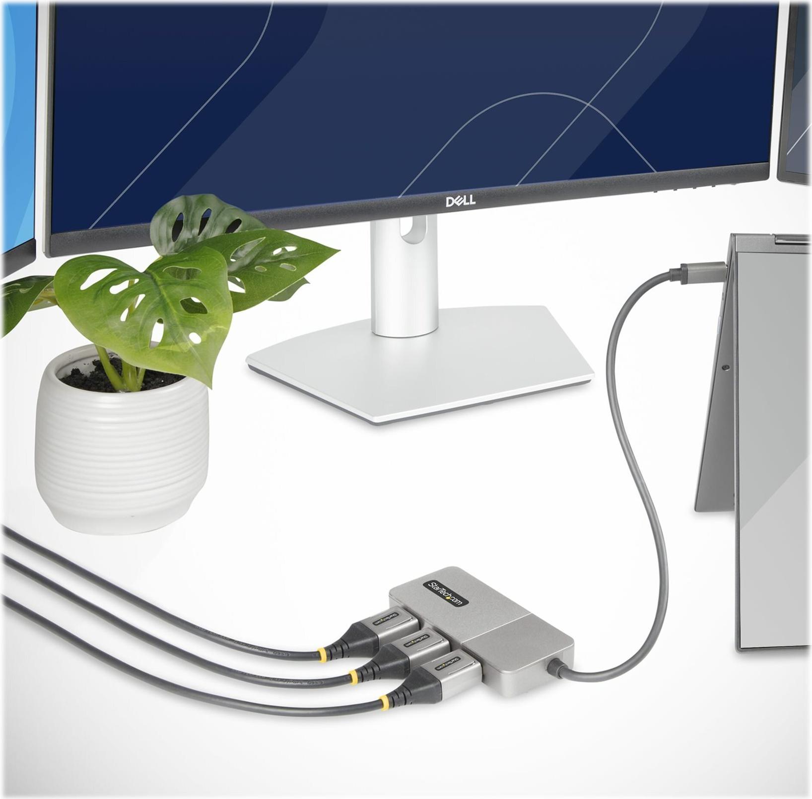 Dieser USB-C zu DisplayPort MST-Hub ermöglicht die Verbindung mit drei DisplayPort-Monitoren über ein USB-C fähiges Host-Gerät mit DisplayPort Alternate Mode (DP Alt Mode).