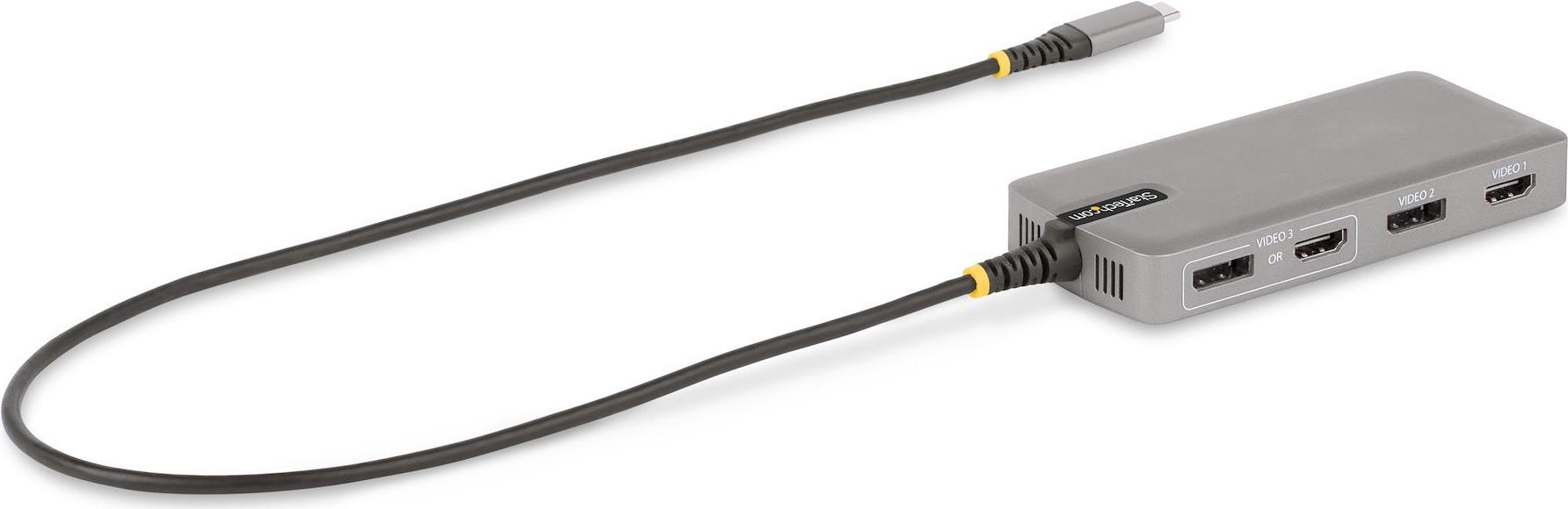 | Produktbeschreibung | StarTech.com USB-C Triple-Monitor Multiport Adapter, Dual 4K 60Hz + 4k 30Hz HDMI & DisplayPort, 3-Port USB 10Gbps Hub, 100W Power Delivery Pass-Through, GbE, 2ft Cable, Mini Dock - Travel Laptop Docking Station (117B-USBC-MULTIPORT) - Dockingstation - USB-C 3.2 Gen 2 / Thunderbolt 3 / Thunderbolt 4 - 2 x HDMI, 2 x DP - 1GbE |