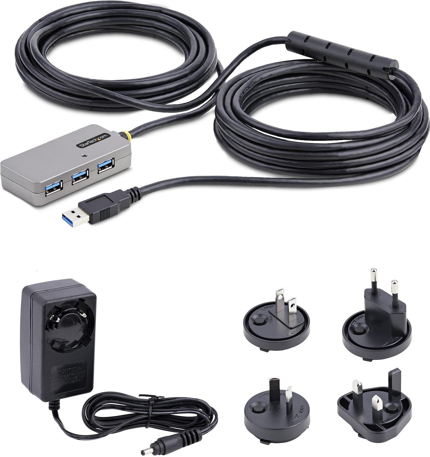 StarTech.com USB Extender Hub, 10m USB 3.0 Extension Cable with 4-Port USB Hub, Active/Bus Powered USB Repeater Cable, Optional 20W Power Supply Included - USB-A Hub w/ ESD Protection (U01043-USB-EXTENDER) - Hub - 4 x USB 3.2 Gen 1 - Desktop (U01043-USB-EXTENDER)
