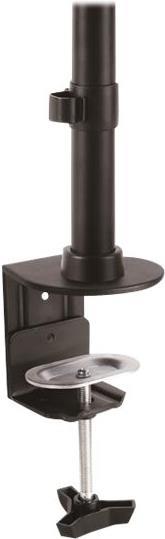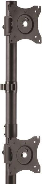 Die vertikale Dual-Monitorhalterung nimmt zwei Bildschirme, übereinander angeordnet, in einer vertikalen Konfiguration auf. Die Höhe der Monitore lässt sich entlang der 700 mm langen Stange anpassen.