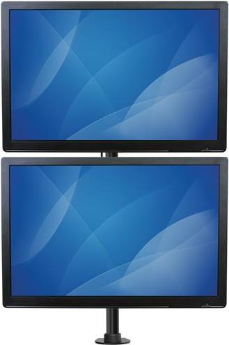Mit dieser robusten und eleganten Dual-Monitorhalterung zur Befestigung am Schreibtisch bringen Sie zwei Bildschirme entfernt von Ihrem Schreibtisch oder Tisch an. So sparen Sie Platz und steigern Ihre Produktivität. Dank seiner massiven Stahlkonstruktion bietet die Dual-Monitorhalterung zwei vertikal übereinander angeordneten Monitoren mit einer Größe von jeweils bis zu 27 Zoll sicheren Halt.