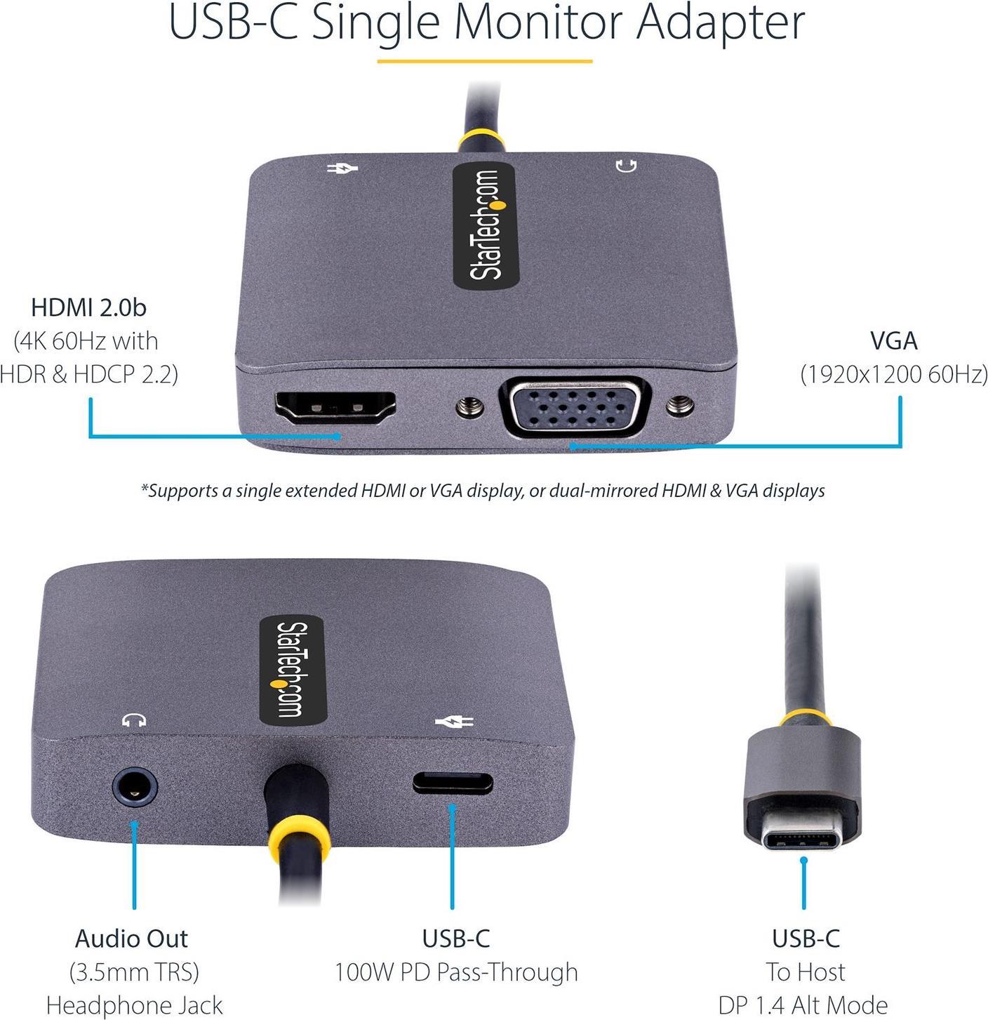 STARTECH USB C VIDEO ADAPTER 4K 60HZ 4K 60HZ 3.5MM AUDIO 100W PD (122-USBC-HDMI-4K-VGA)