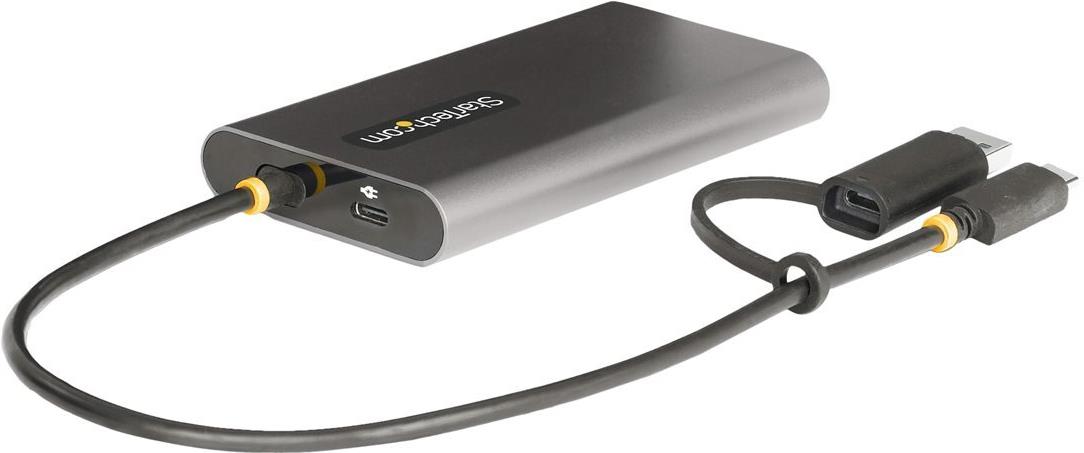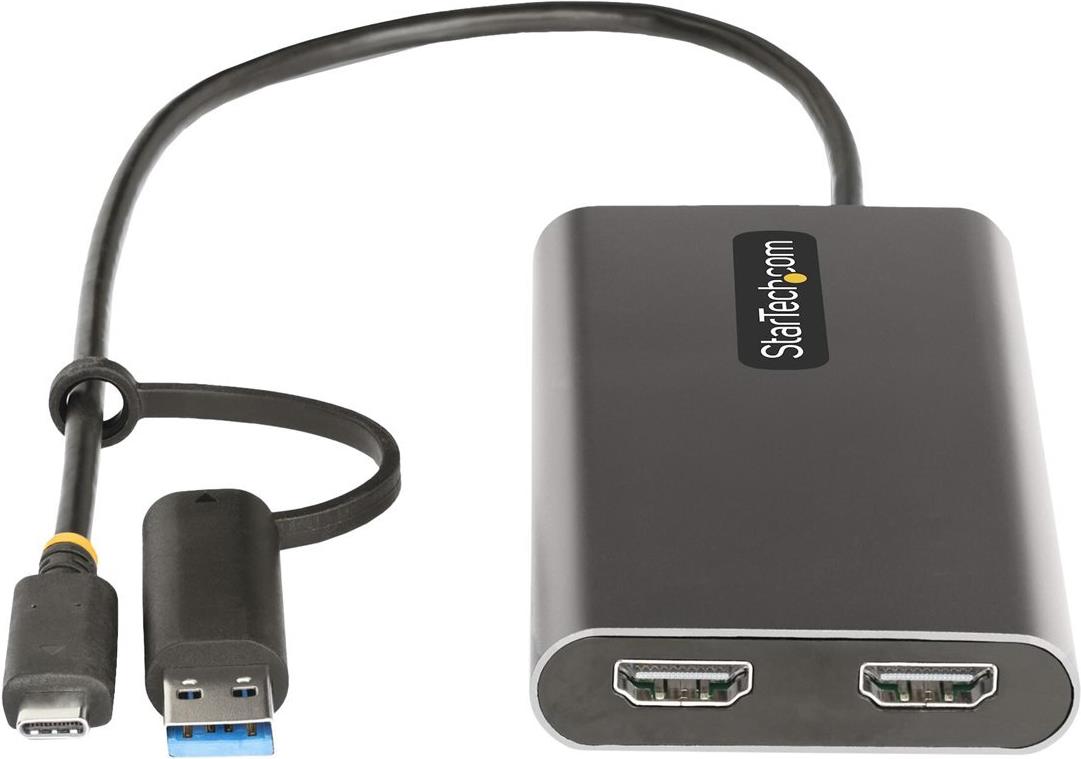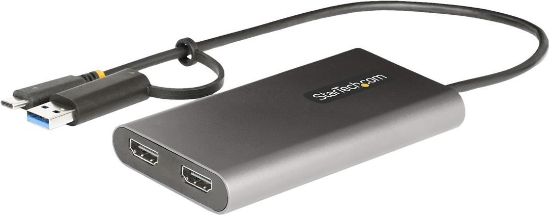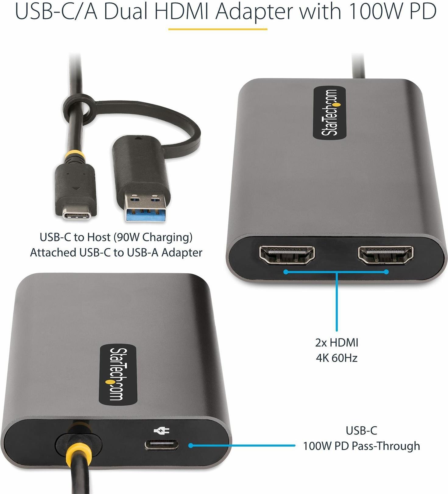 | Produktbeschreibung | StarTech.com USB-C to Dual-HDMI Adapter, USB-C or A to 2x HDMI, 4K 60Hz, 100W PD Pass-Through, 1ft (30cm) Built-in Cable, External Video Graphics Adapter - USB to HDMI Multi-Monitor Converter for Laptop (109B-USBC-HDMI) - Videoadapter - HDMI / USB - TAA-konform - 30 cm |
