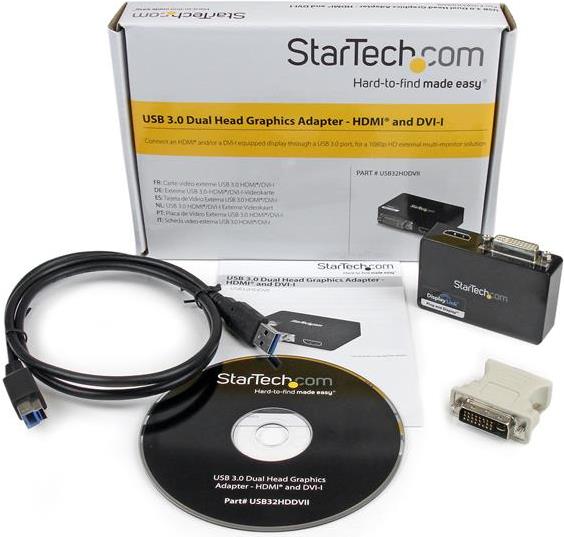 | Produktbeschreibung | StarTech.com USB 3.0 auf HDMI / DVI Video Adapter - Externe Dual Multi Monitor Grafikkarte - 1920x1200 externer Videoadapter - DisplayLink DL-3900 - 1 GB - Schwarz |