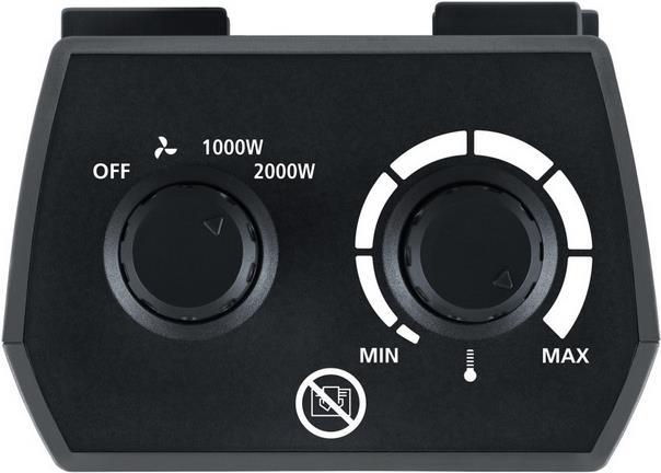 4 Stufen-Schalter: Aus / Kaltluft / Warmluft (1000W) / Heißluft (2000W)